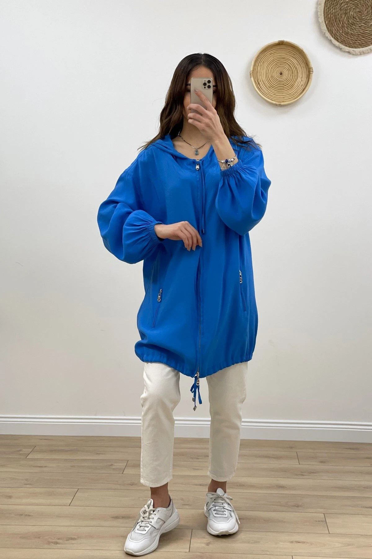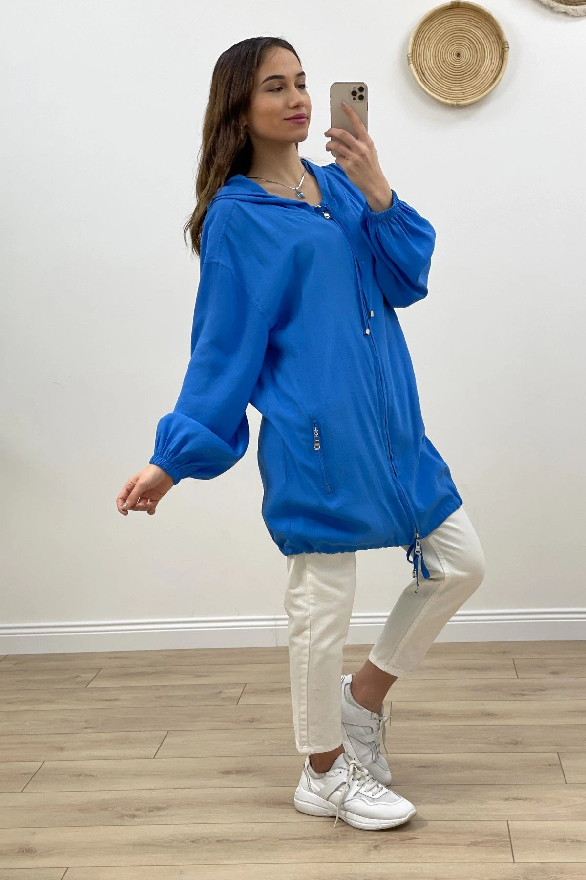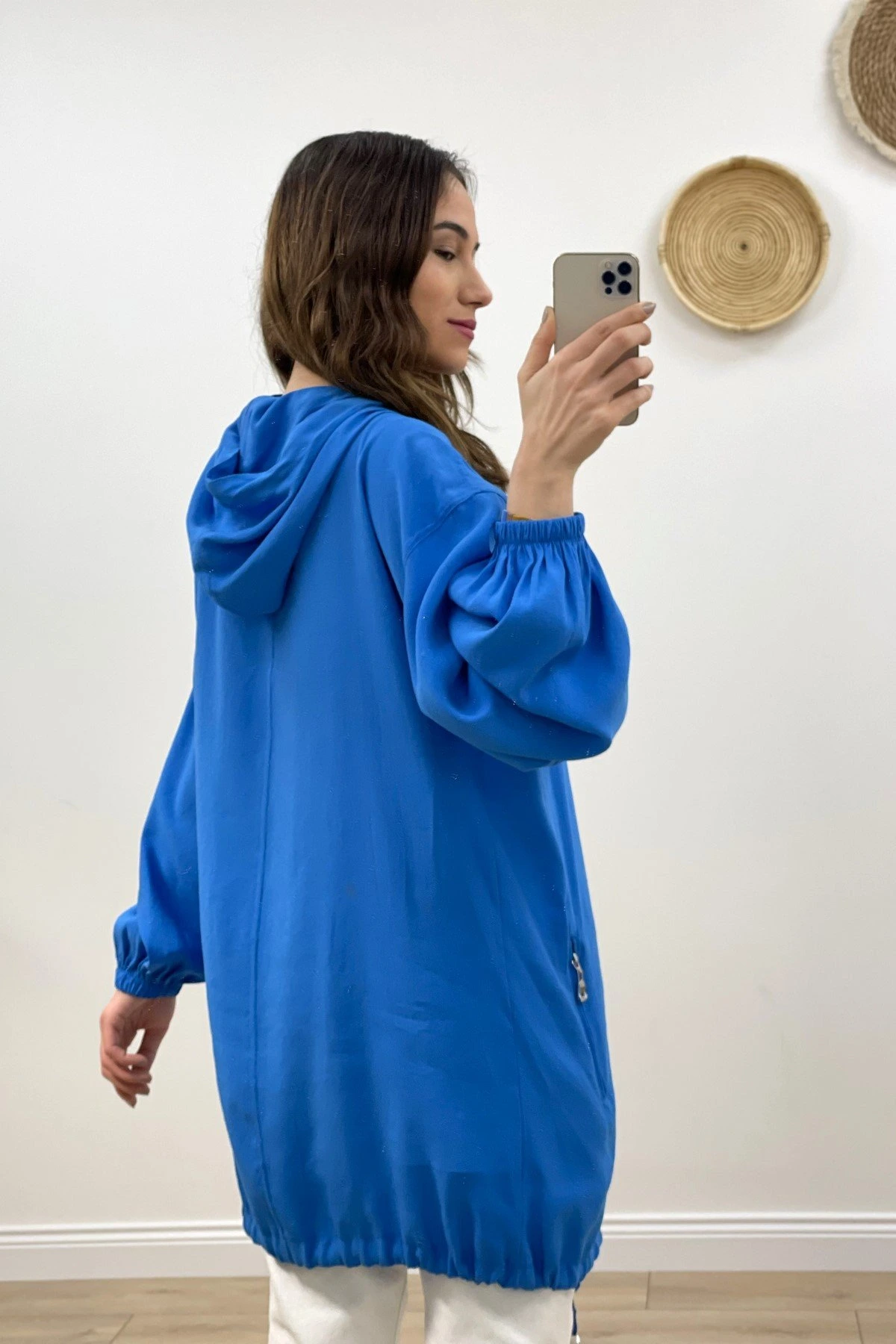 FERMUARLI KAPIŞONLU MODAL TUNİK CEKET – İNDİGO