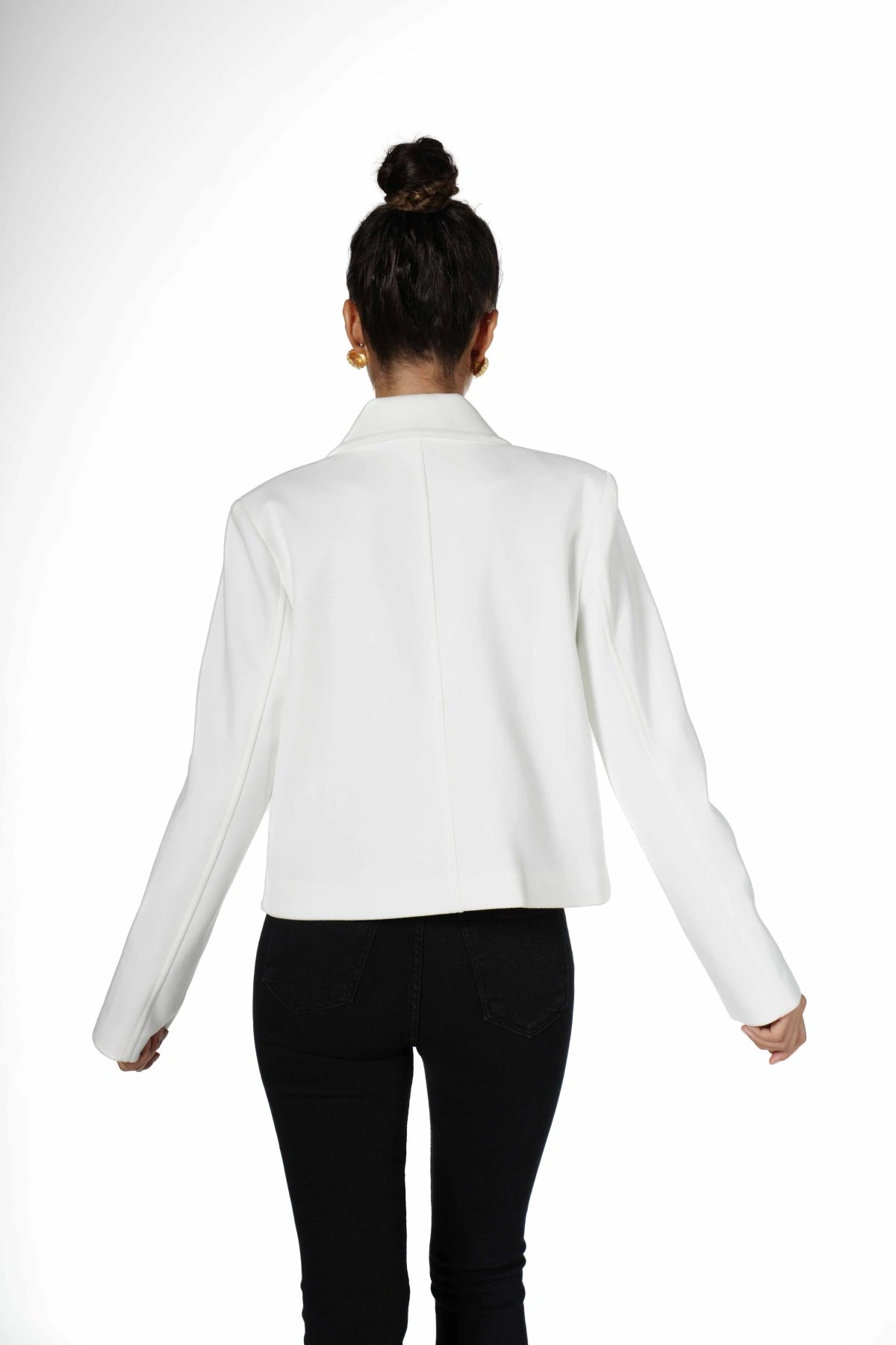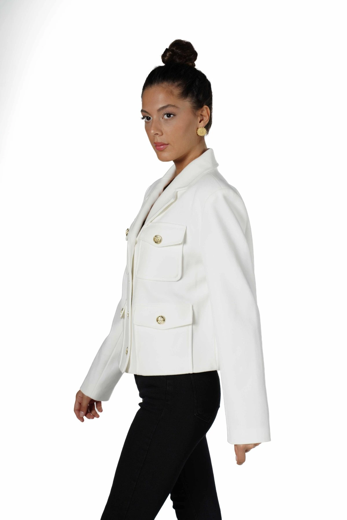 GOLD DÜĞME 4 CEP ASTARLI KISA KAŞE CEKET – EKRU