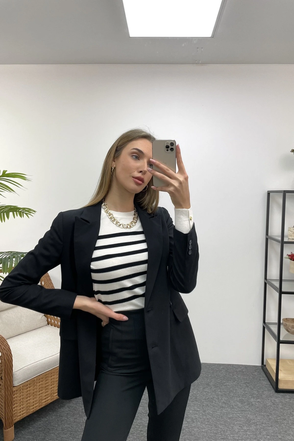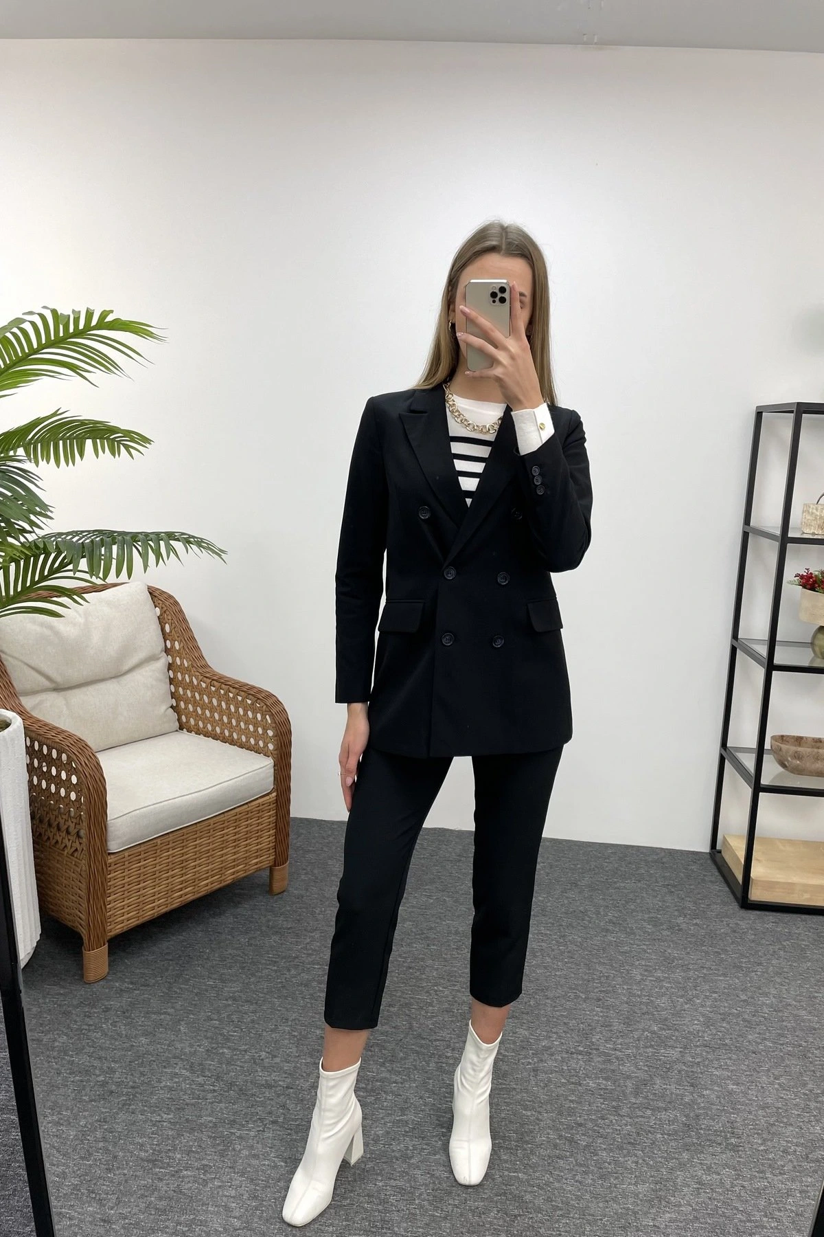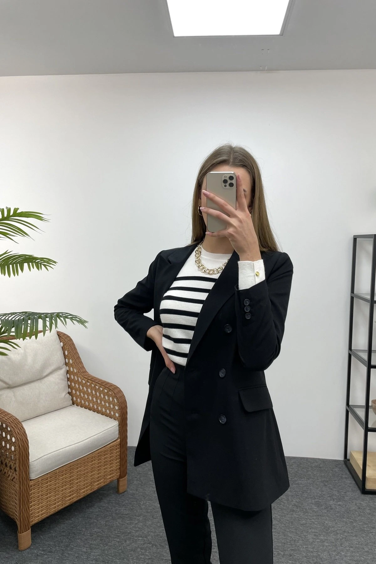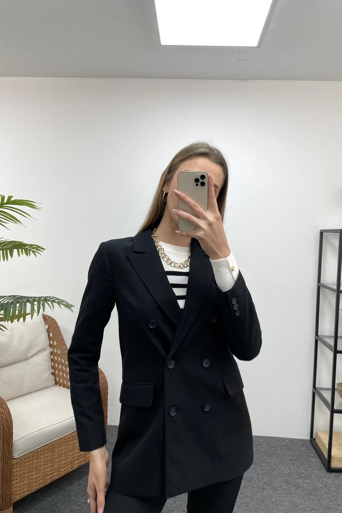 İTHAL KRUVAZE YAKA DÜĞMELİ CEKET – SİYAH