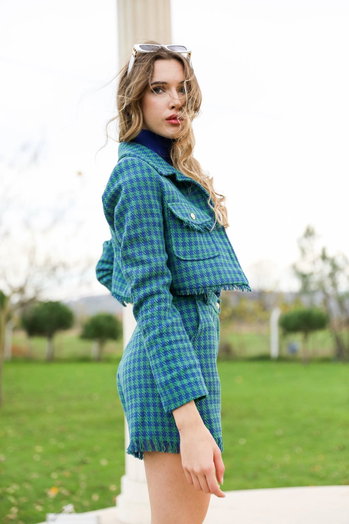 KAZAYAĞI KISA PÜSKÜLLÜ CEKET – SAKS