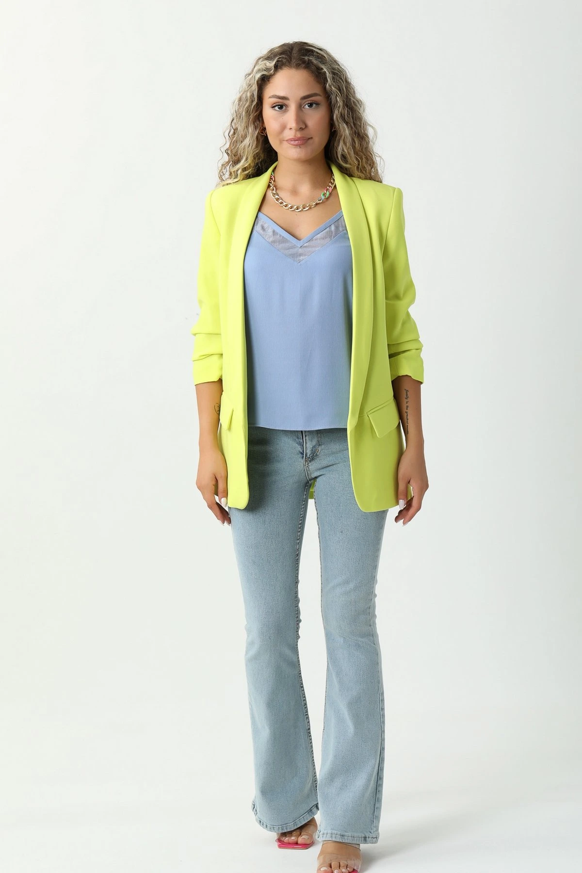 KOL BÜZGÜ BOYFREND CEKET – LİME
