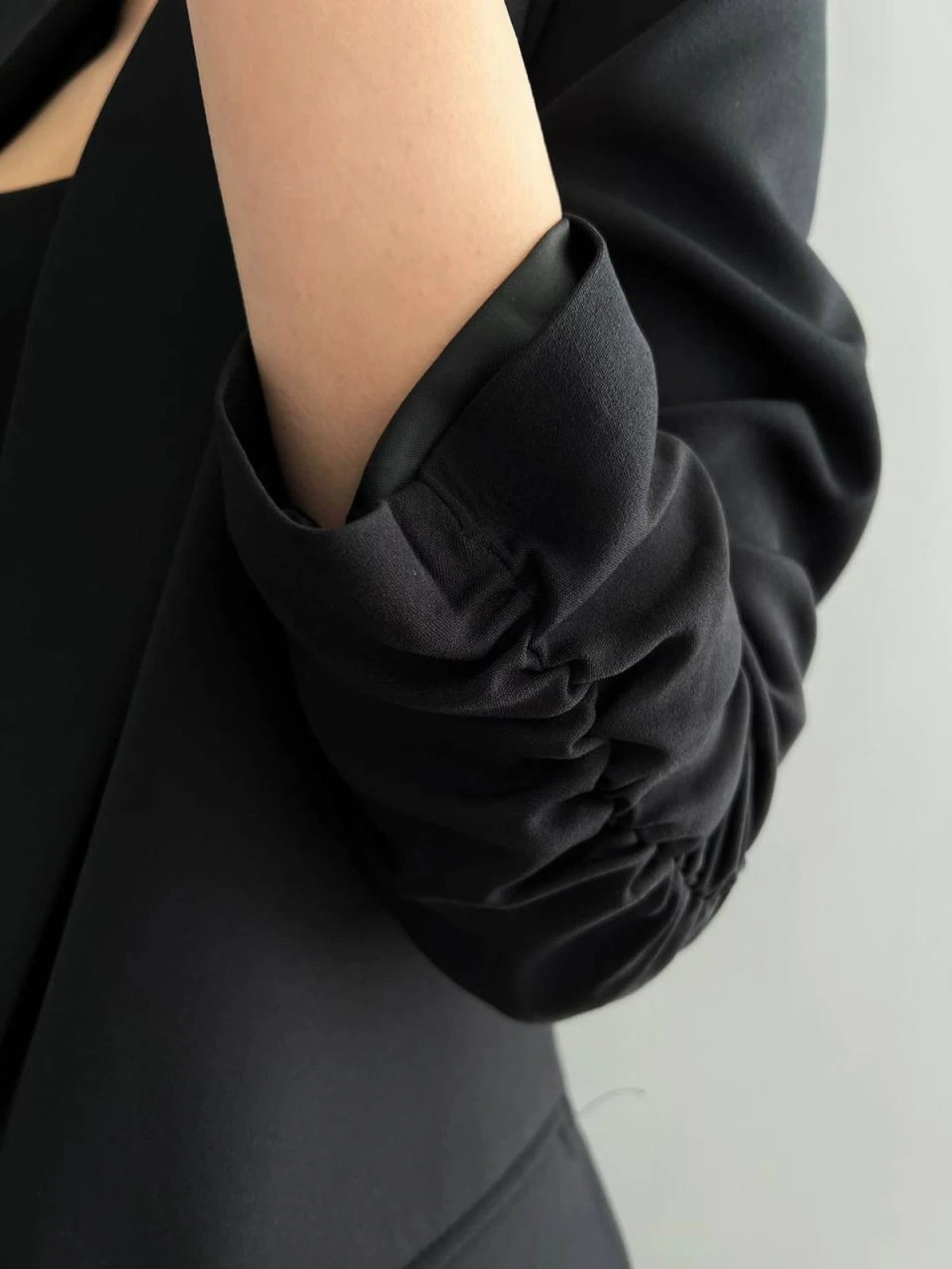 KOL BÜZGÜ KUMAŞ CEKET – SİYAH