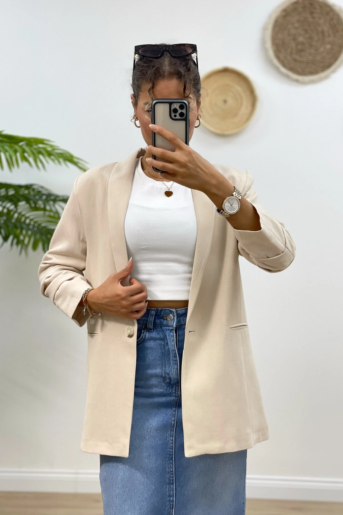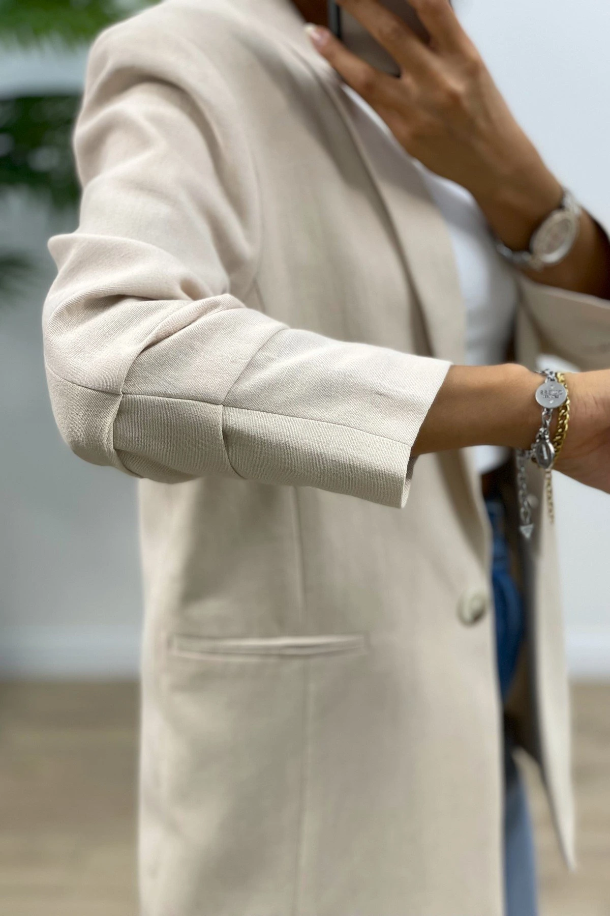 KOL BÜZGÜLÜ ASTARLI PAMUK CEKET – BEJ