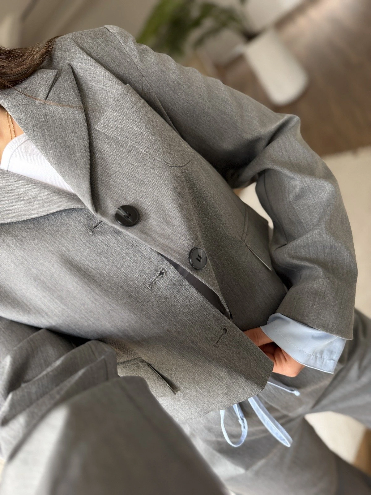 KOL KUMAŞ DETAY VİSKON PAMUK KISA CEKET – GRİ