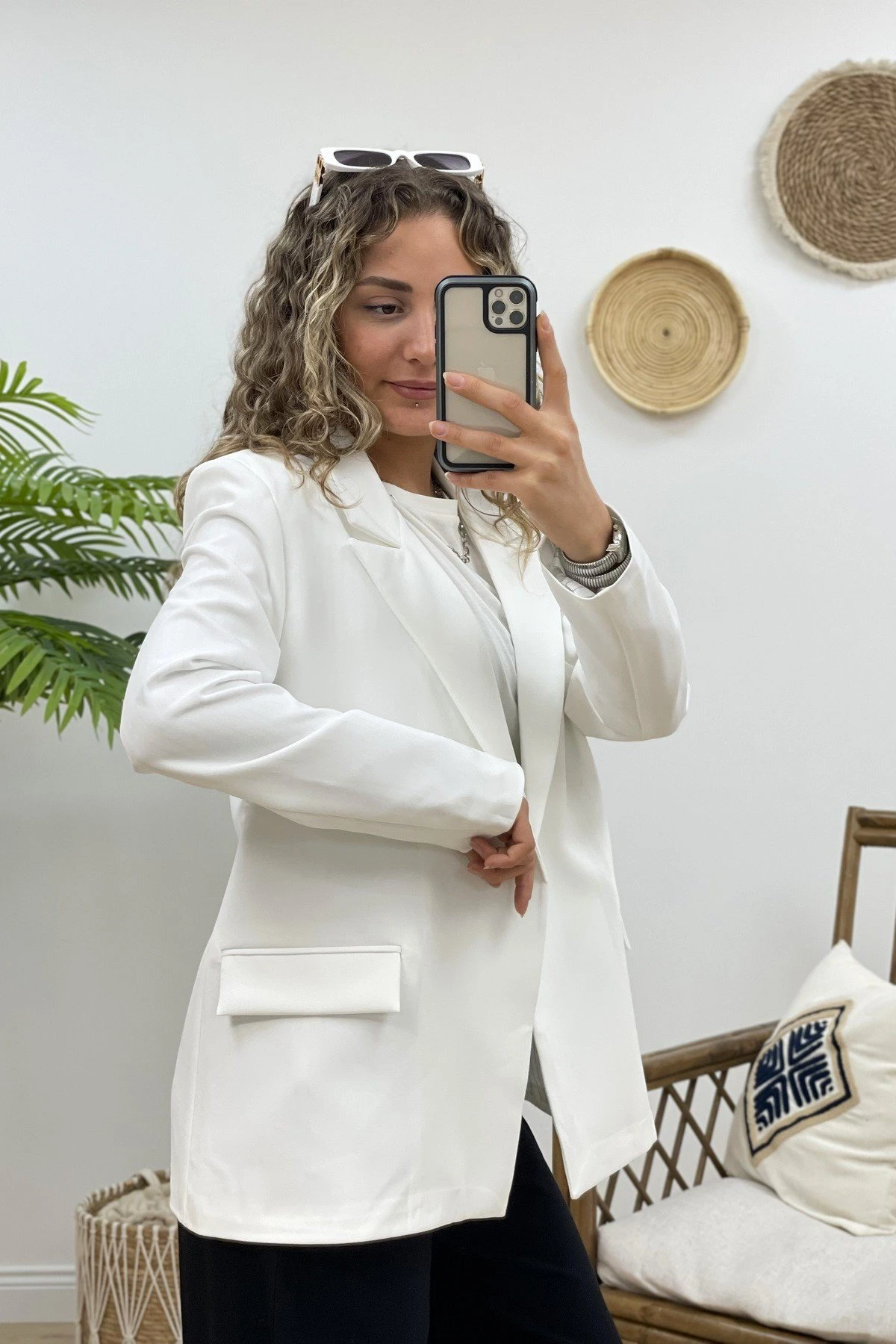 ÖNÜ AÇIK ASTARI ÇİZGİLİ SALAŞ CEKET – BEYAZ