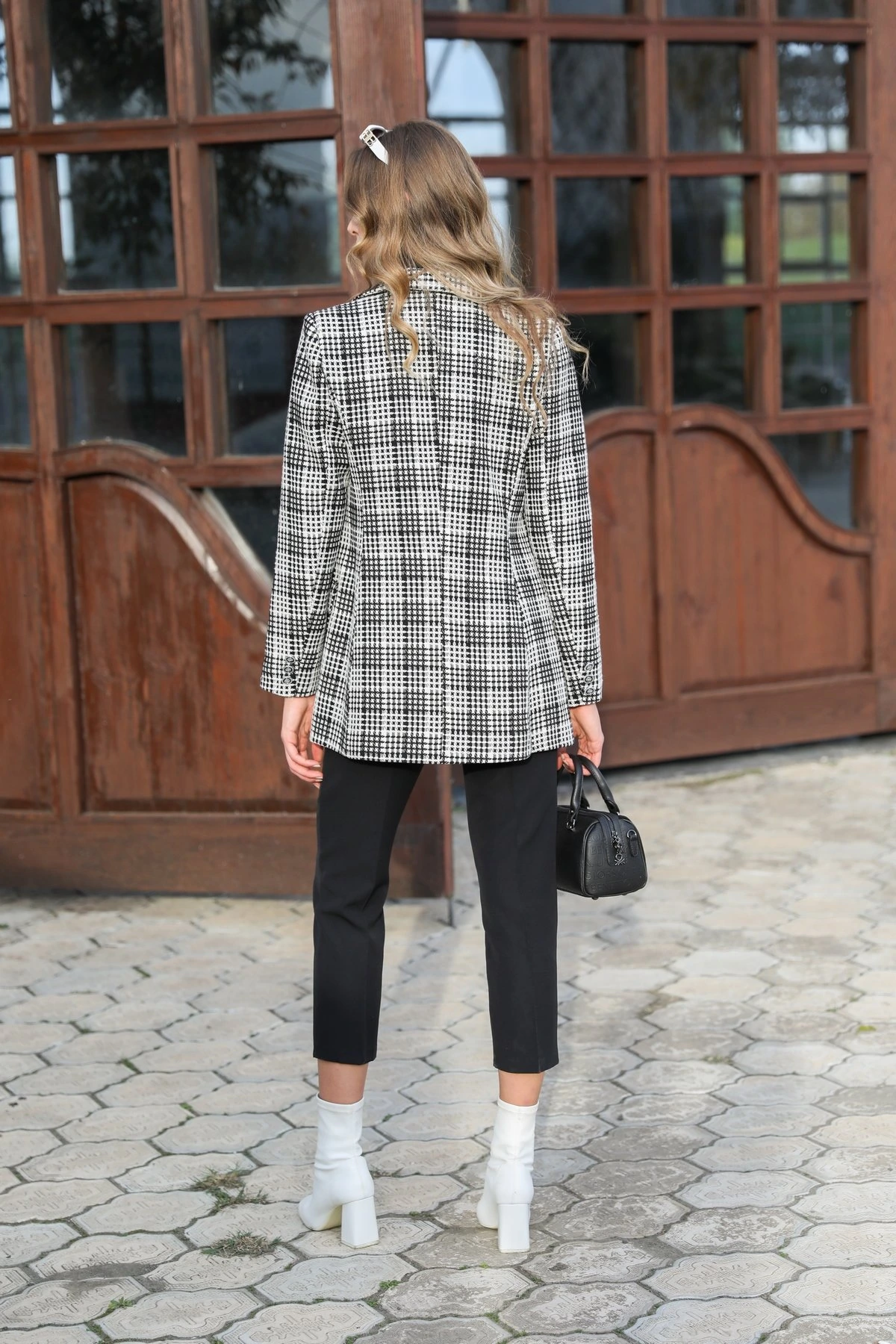 ÖRGÜ DESEN KRUVAZE CEKET – SİYAH