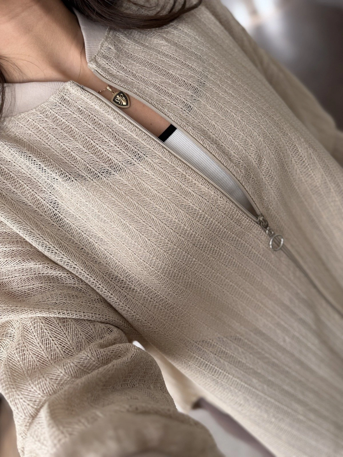 ÖRME DOKUMA FERMUARLI SALAŞ FİLE CEKET – BEJ