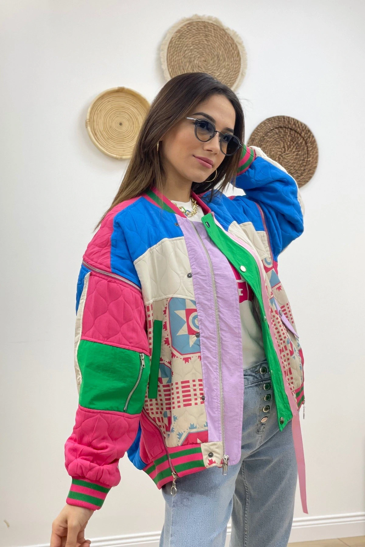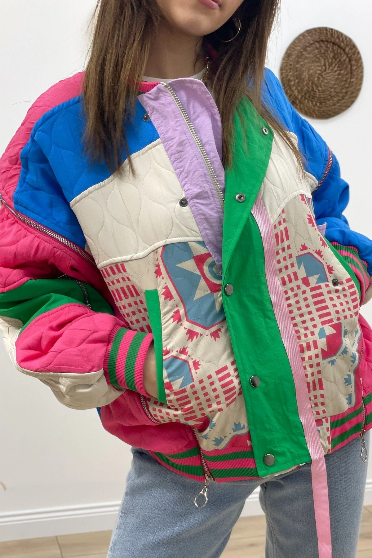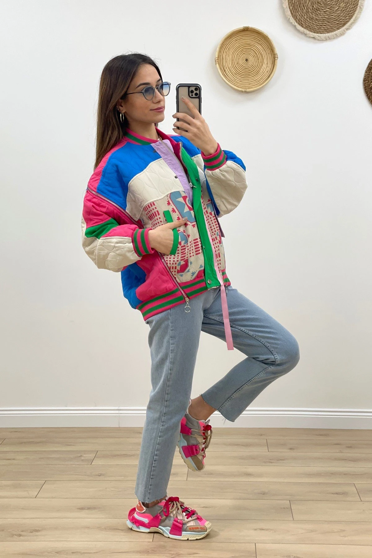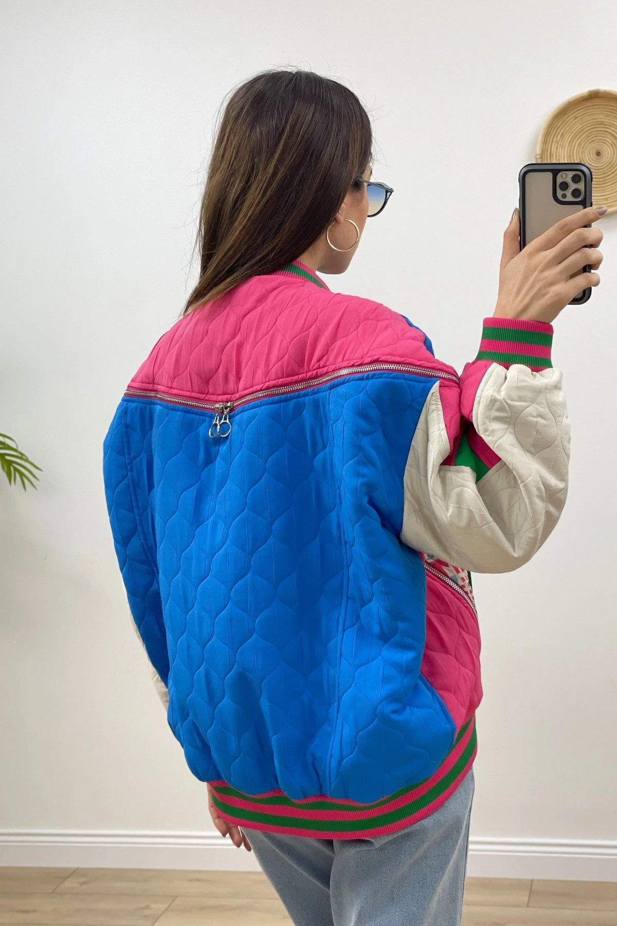 RENKLİ FERMUAR DETAY KAPİTONE CEKET – FUŞYA