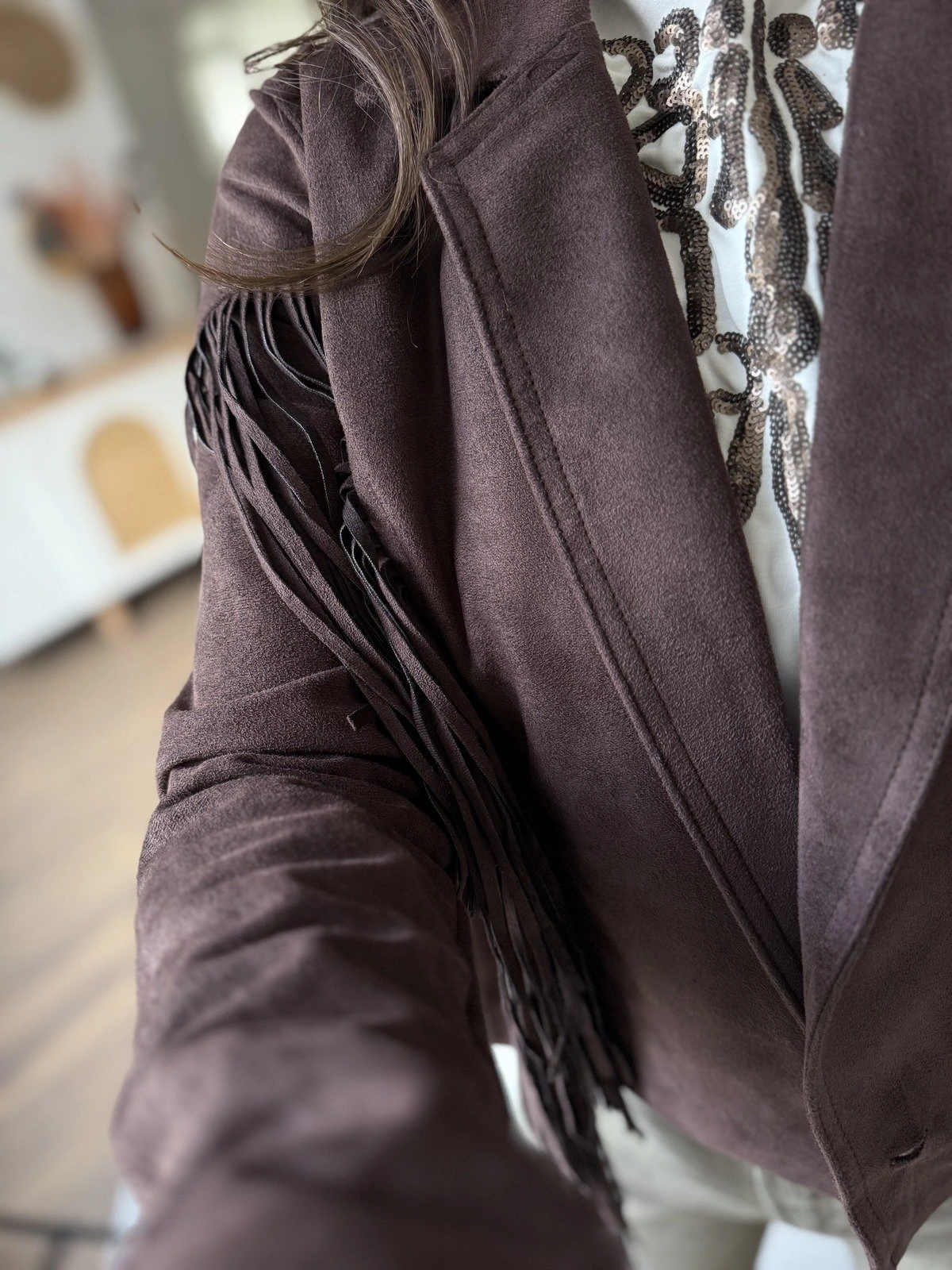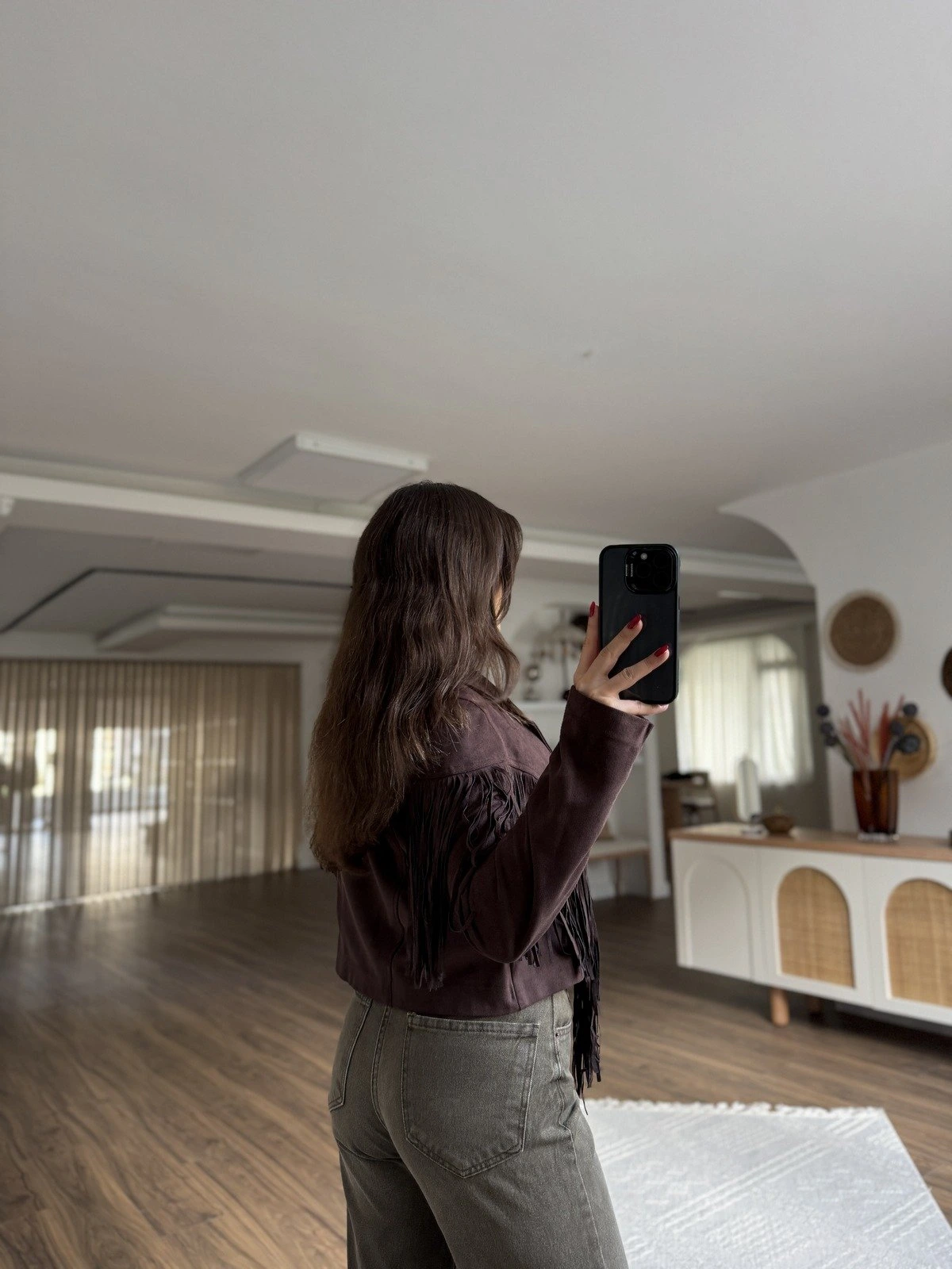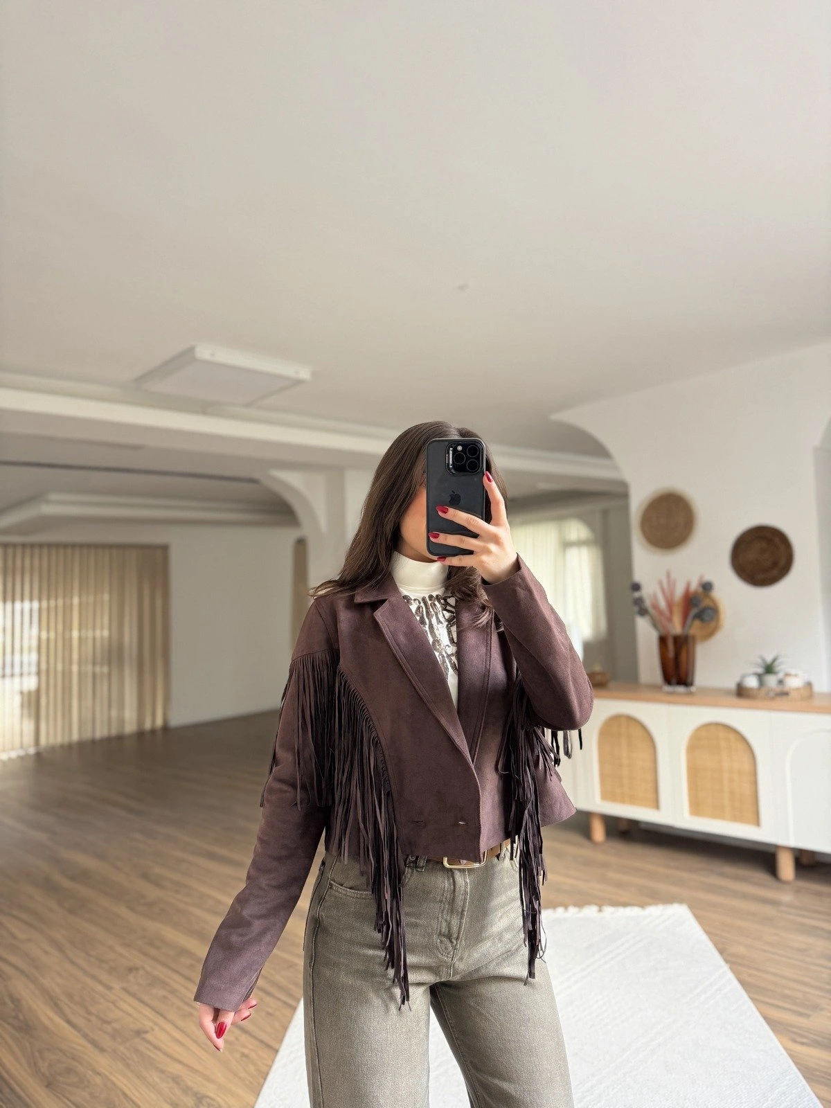 SAÇAKLI CROP SÜET CEKET – KAHVE
