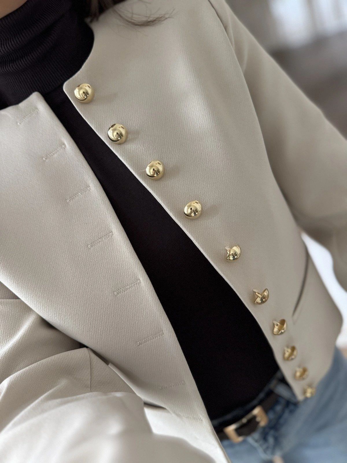 SIFIR YAKA DÜĞME AKSESUAR ASTARLI CROP CEKET – KREM
