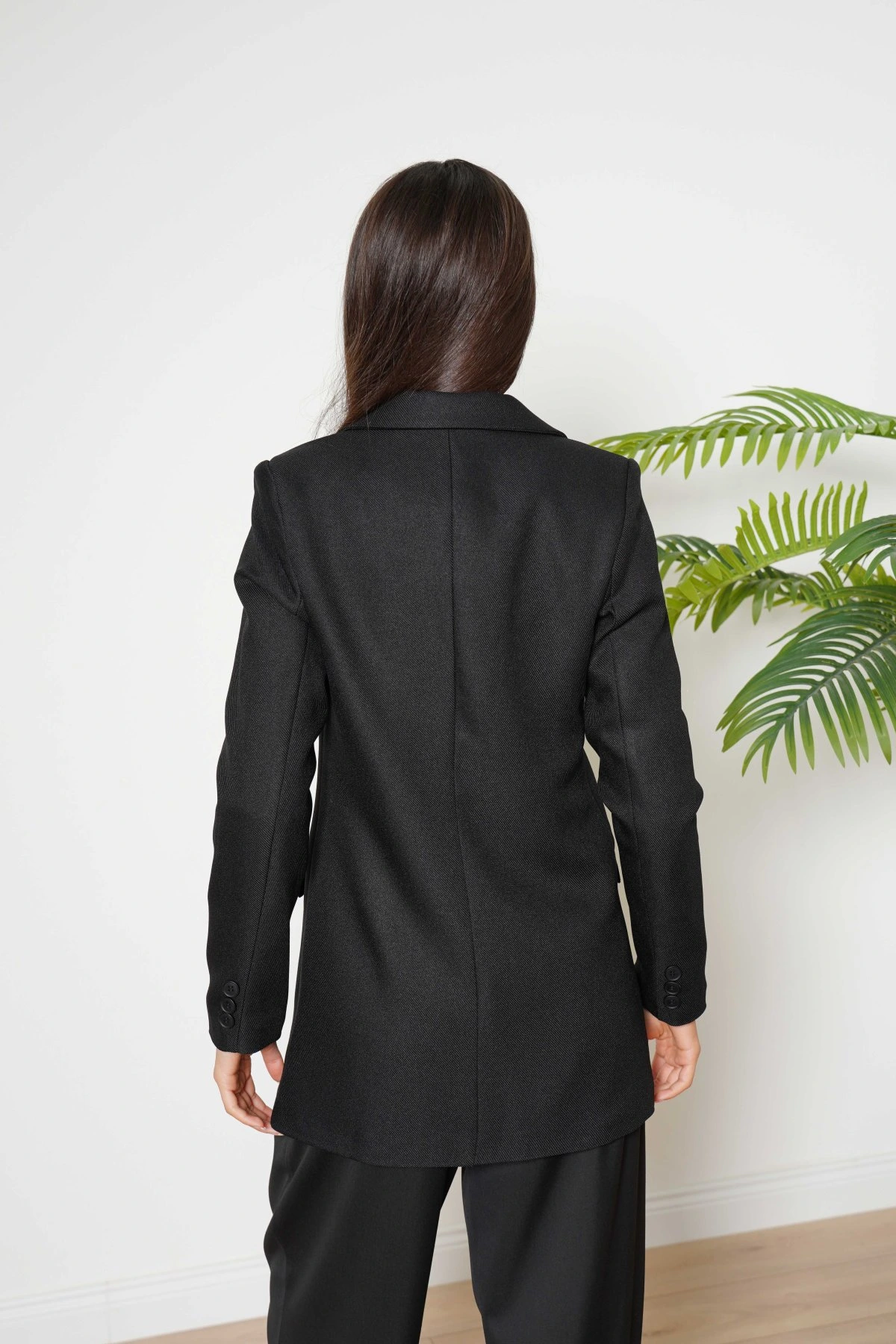 TEK DÜĞME YÜN EFEKT CEKET – SİYAH