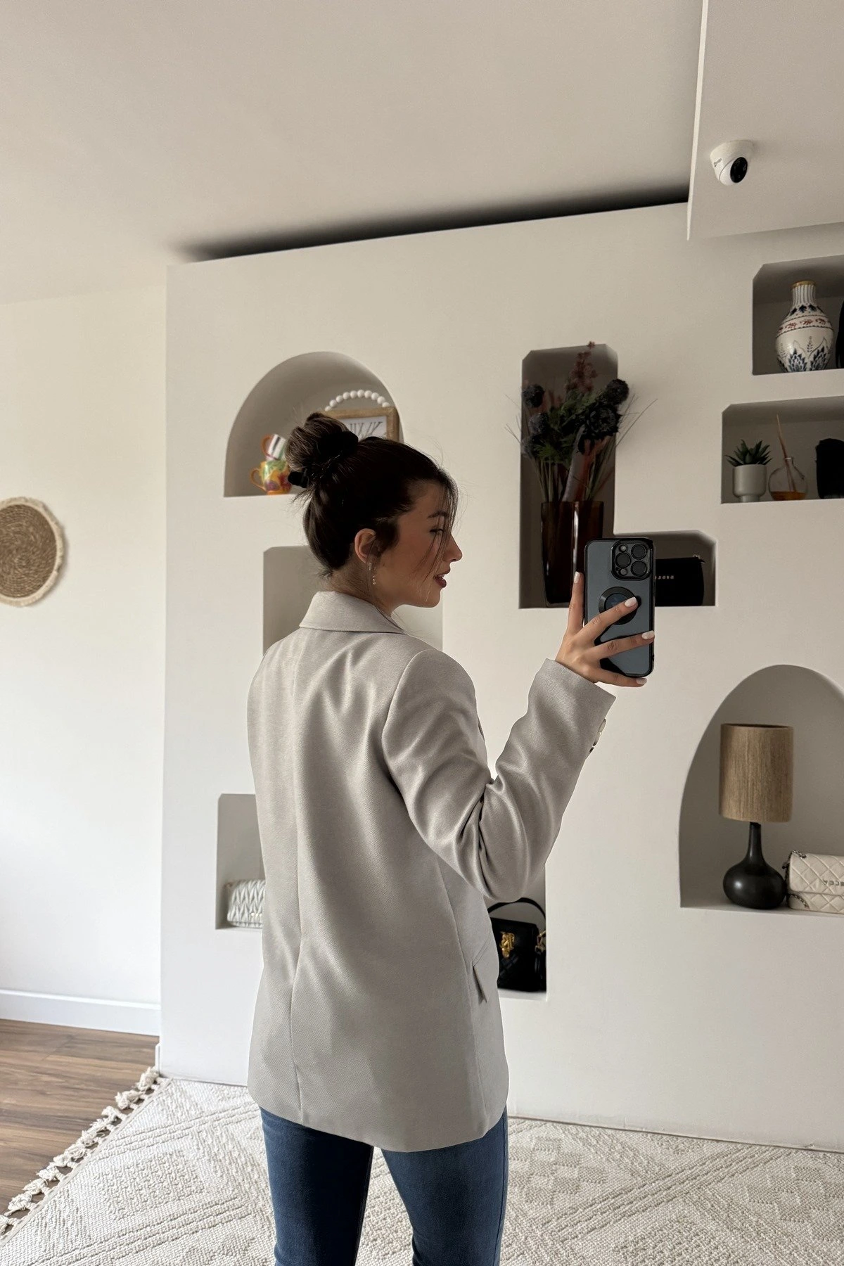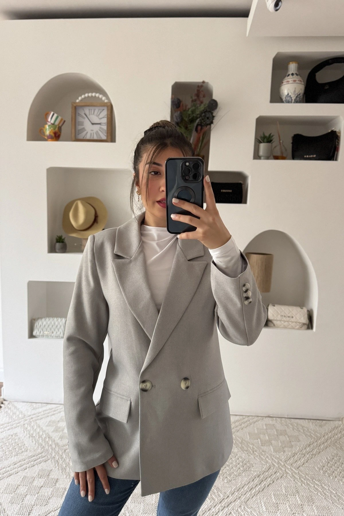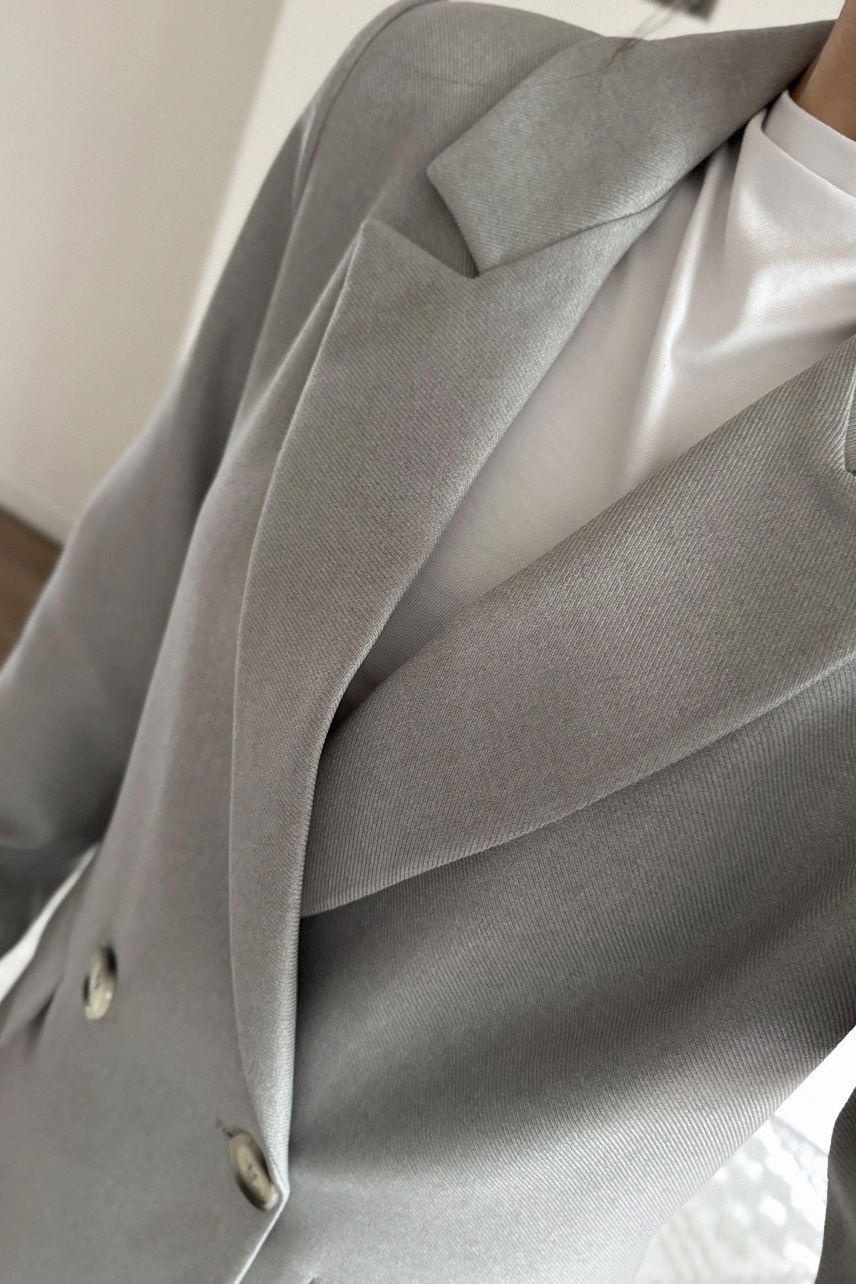YÜN EFEKT BALIKSIRTI ÇİFT DÜĞME CEKET – GRİ