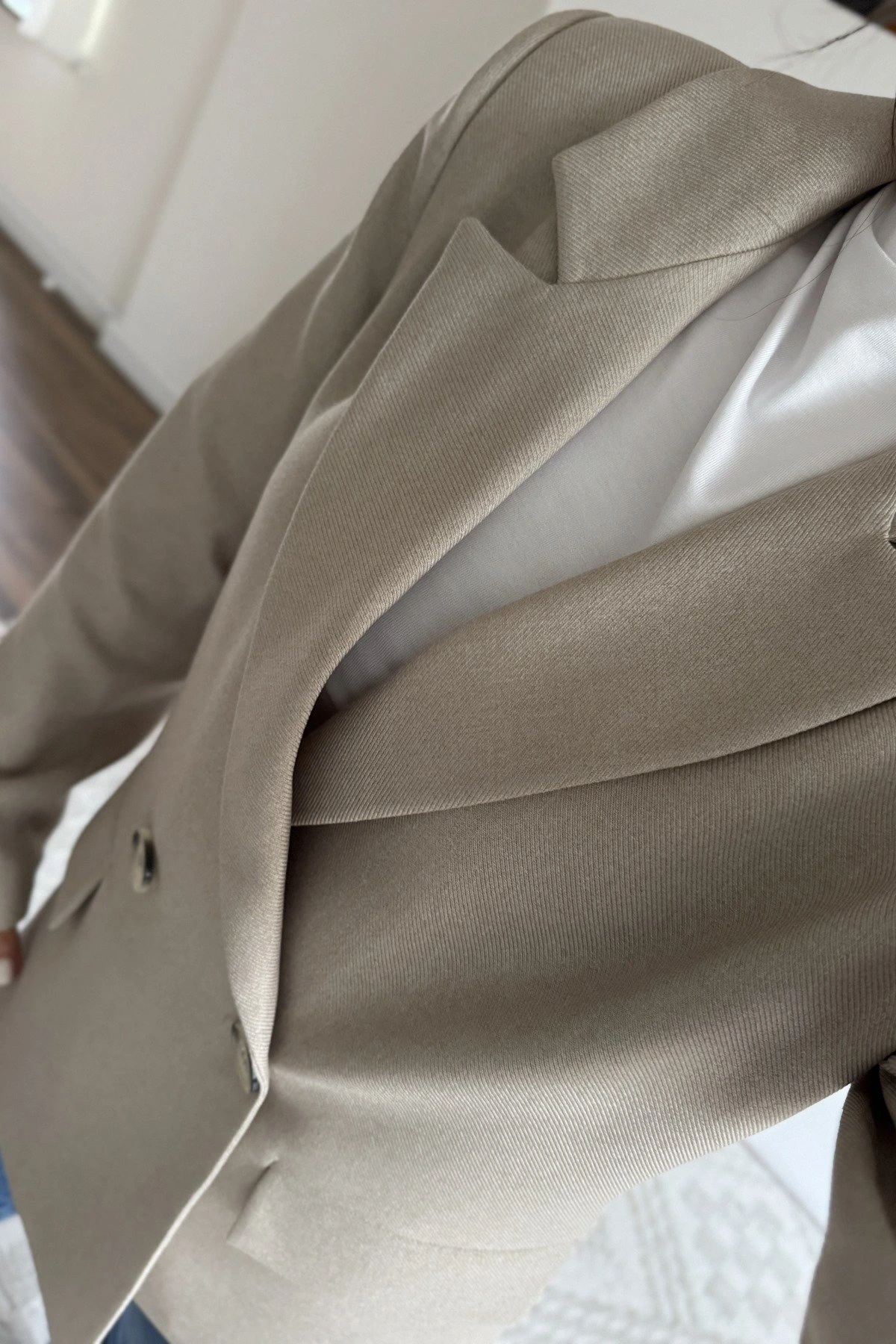 YÜN EFEKT BALIKSIRTI ÇİFT DÜĞME CEKET – TAŞ