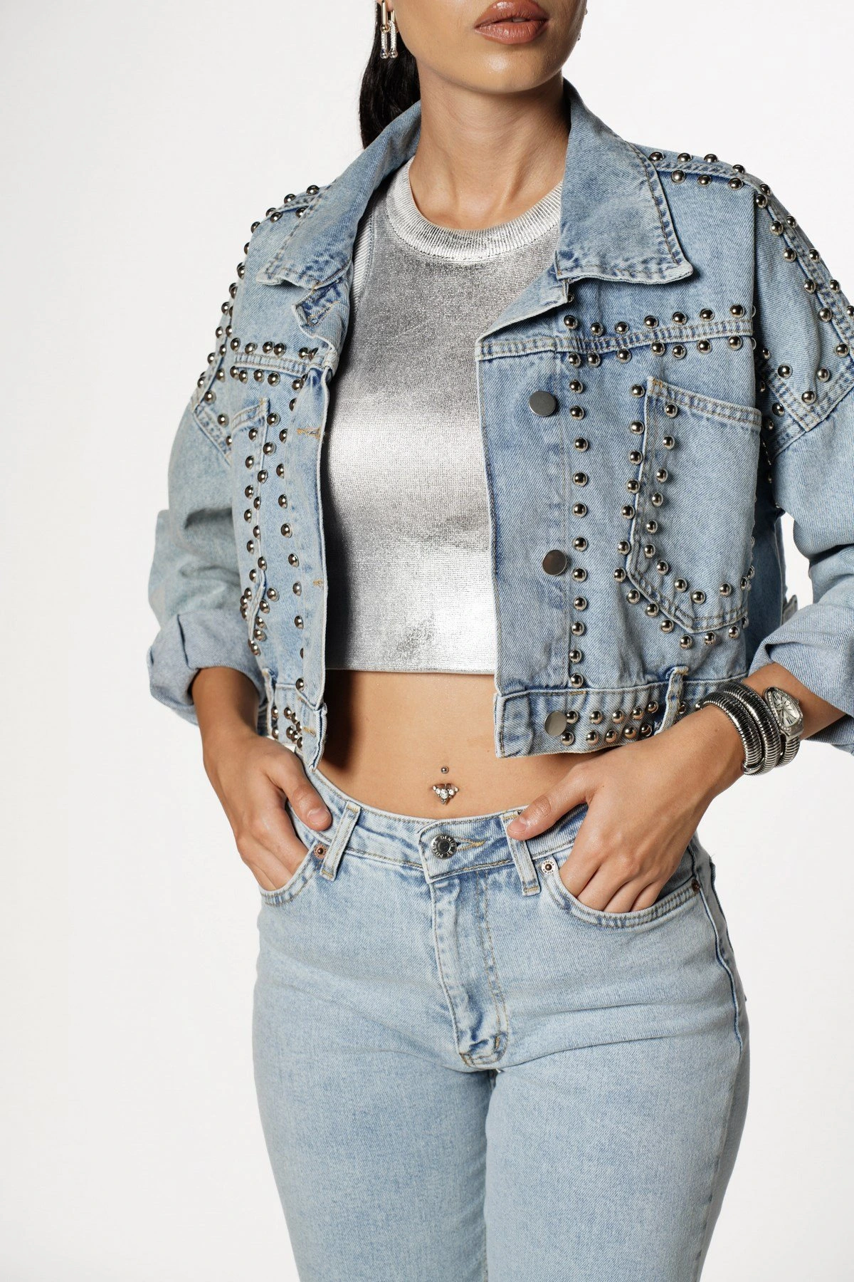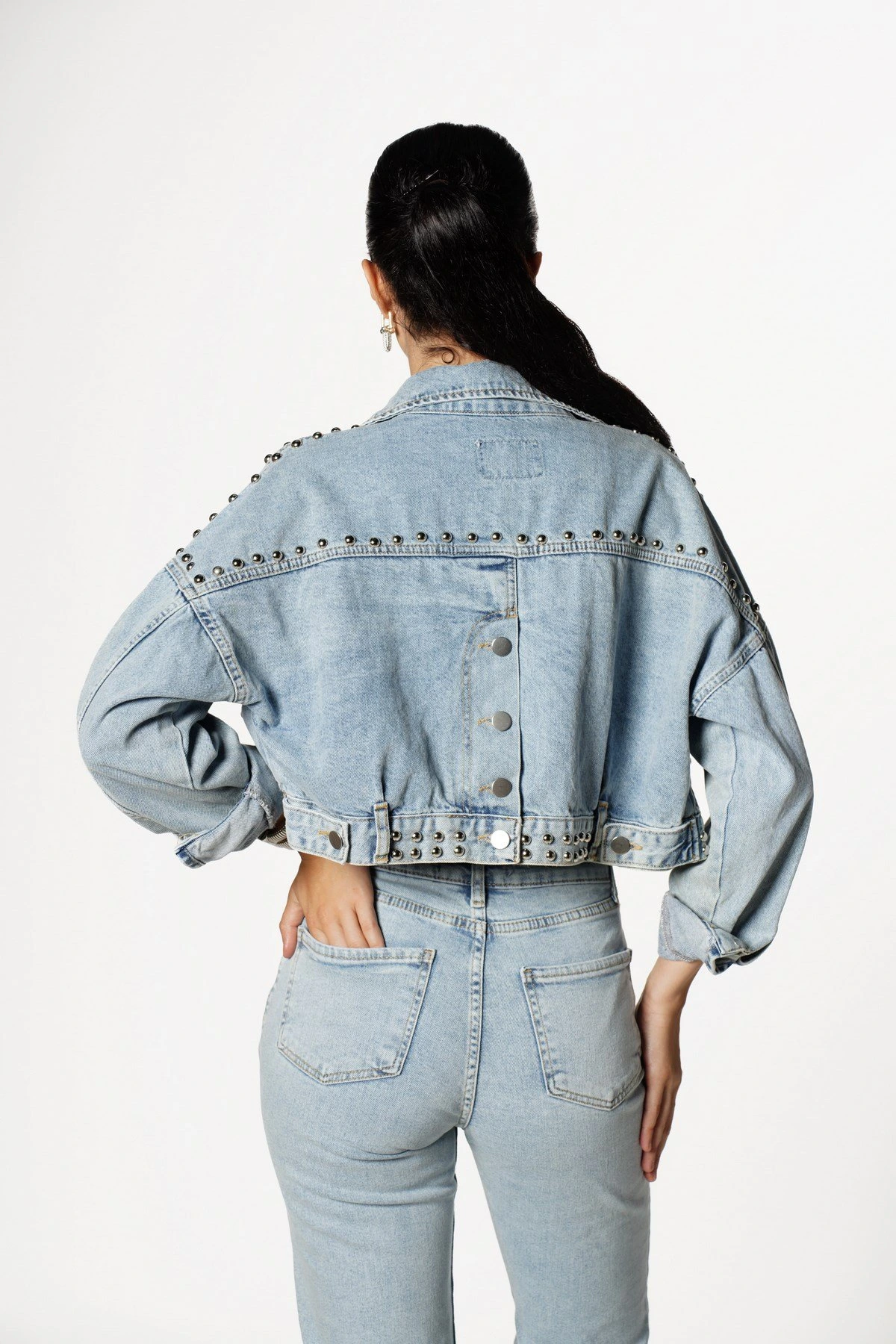 ZIMBALI SIRT DÜĞME KISA KOT CEKET – MAVİ