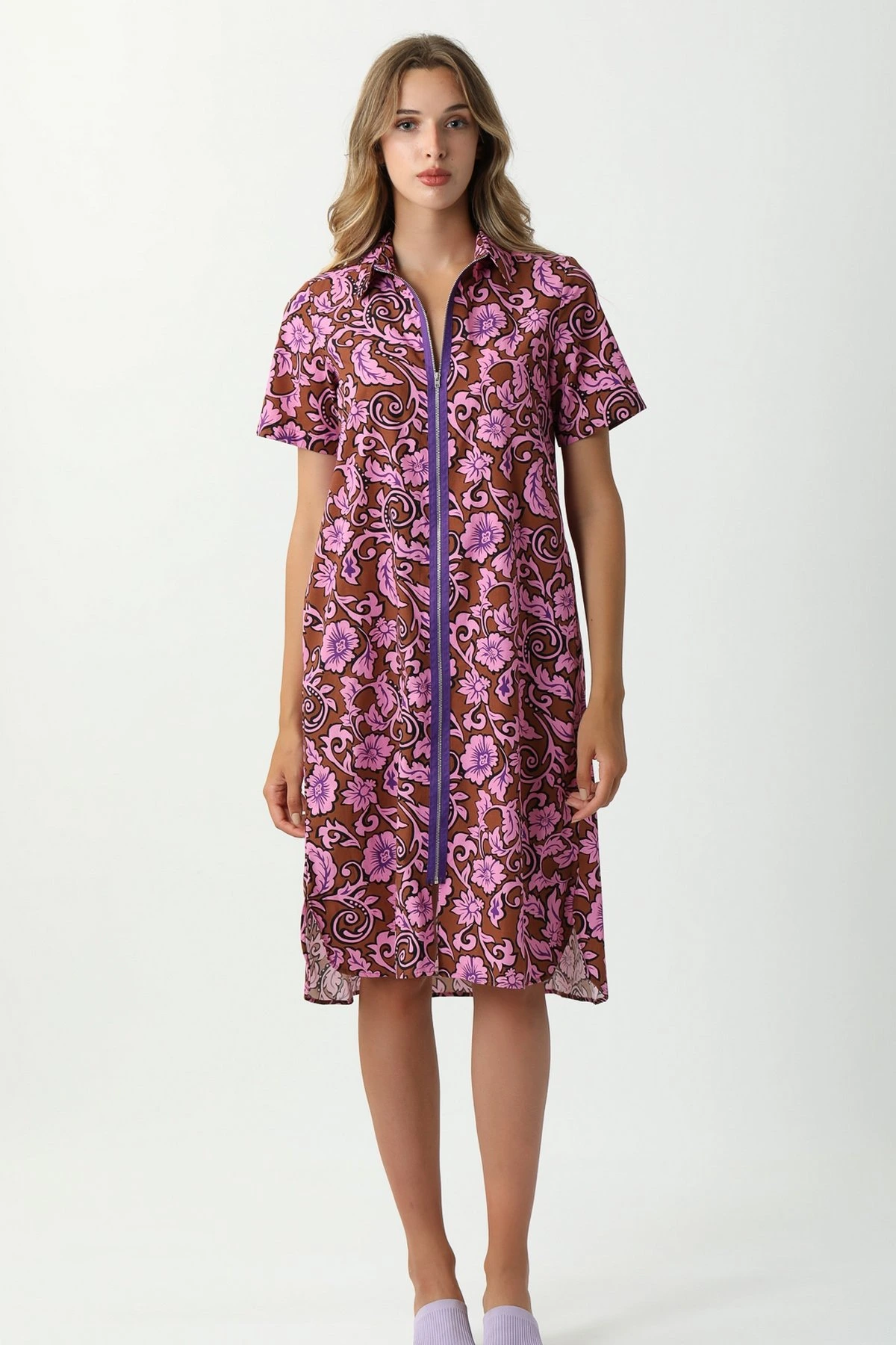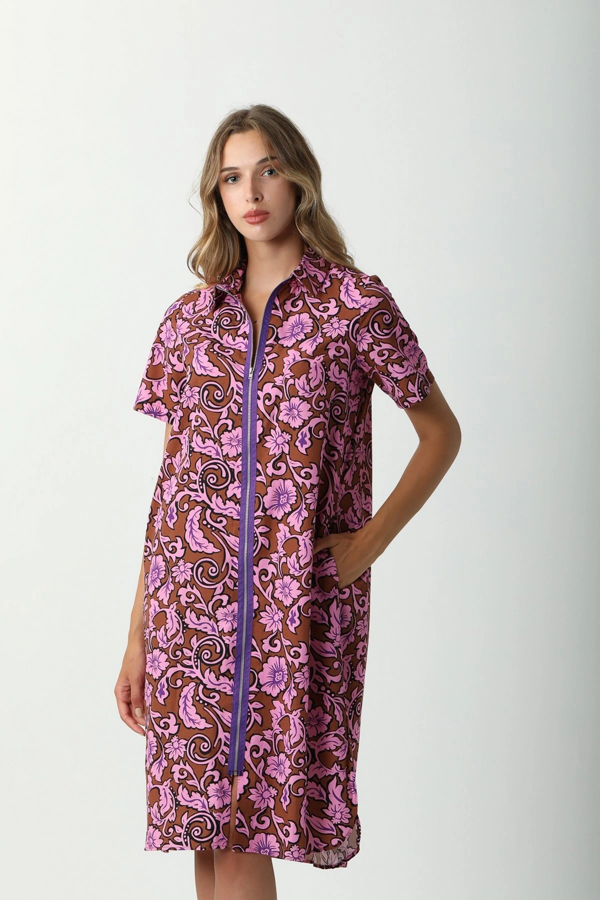 ADOLFO FERMUARLI DESENLİ ELBİSE – KAHVE