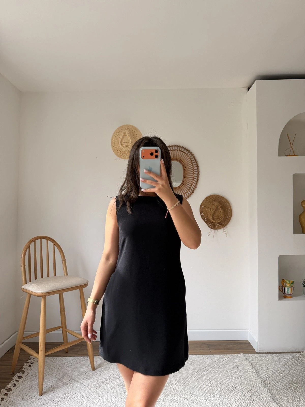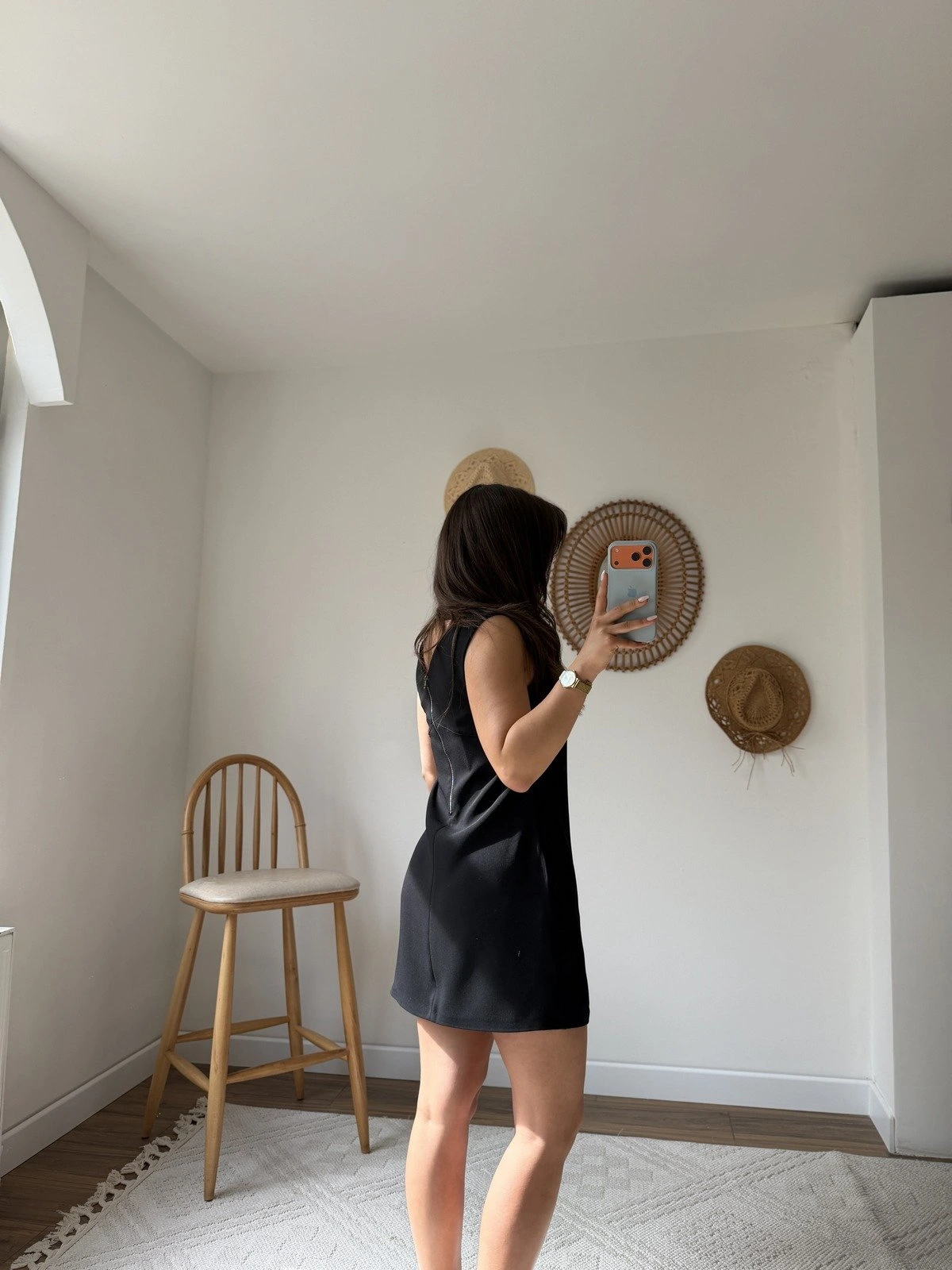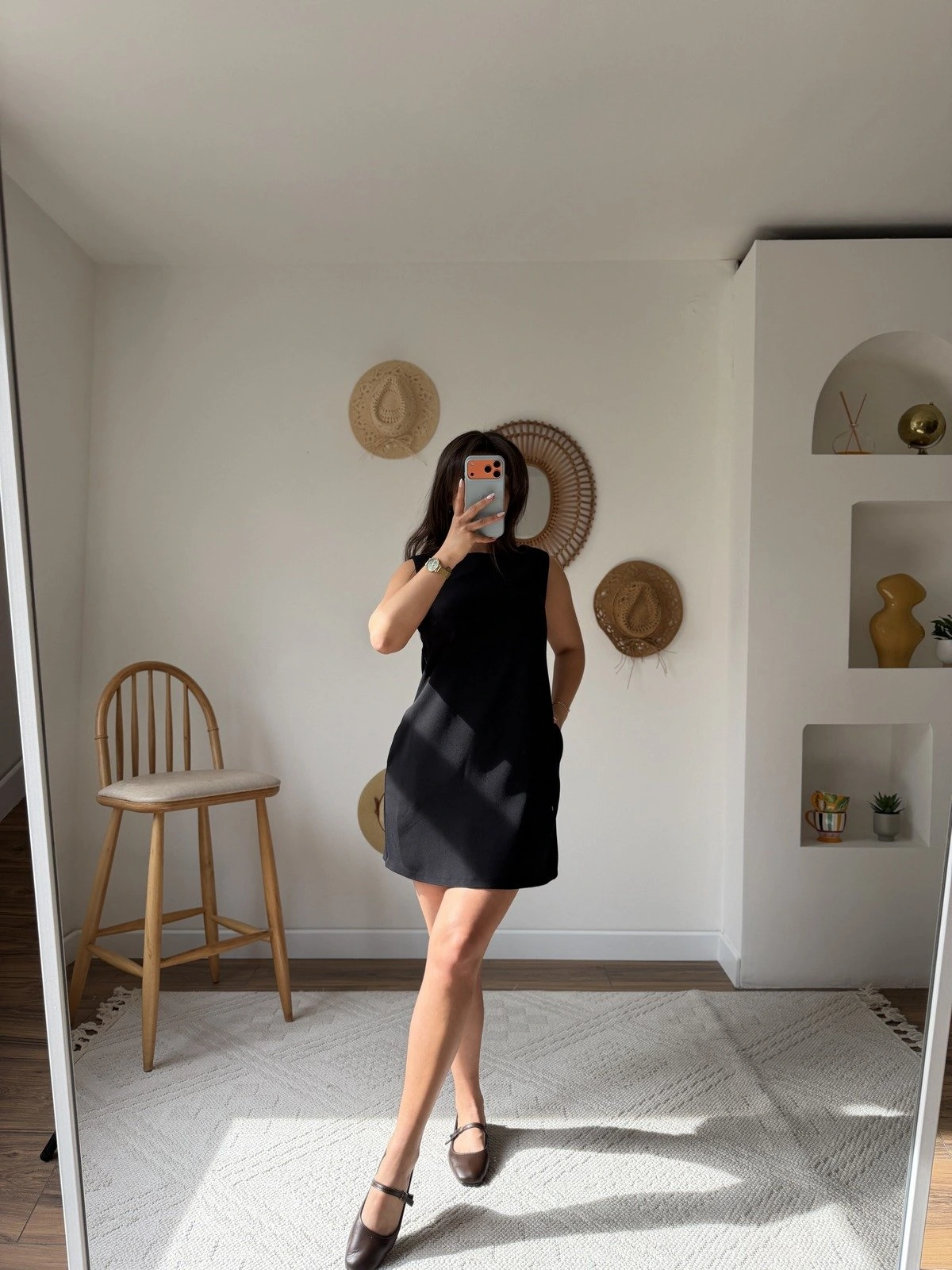 ARKA FERMUARLI CEPLİ KUMAŞ ELBİSE – SİYAH