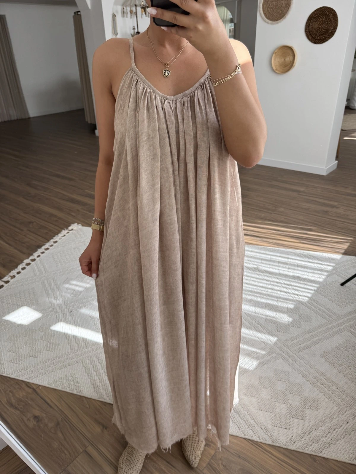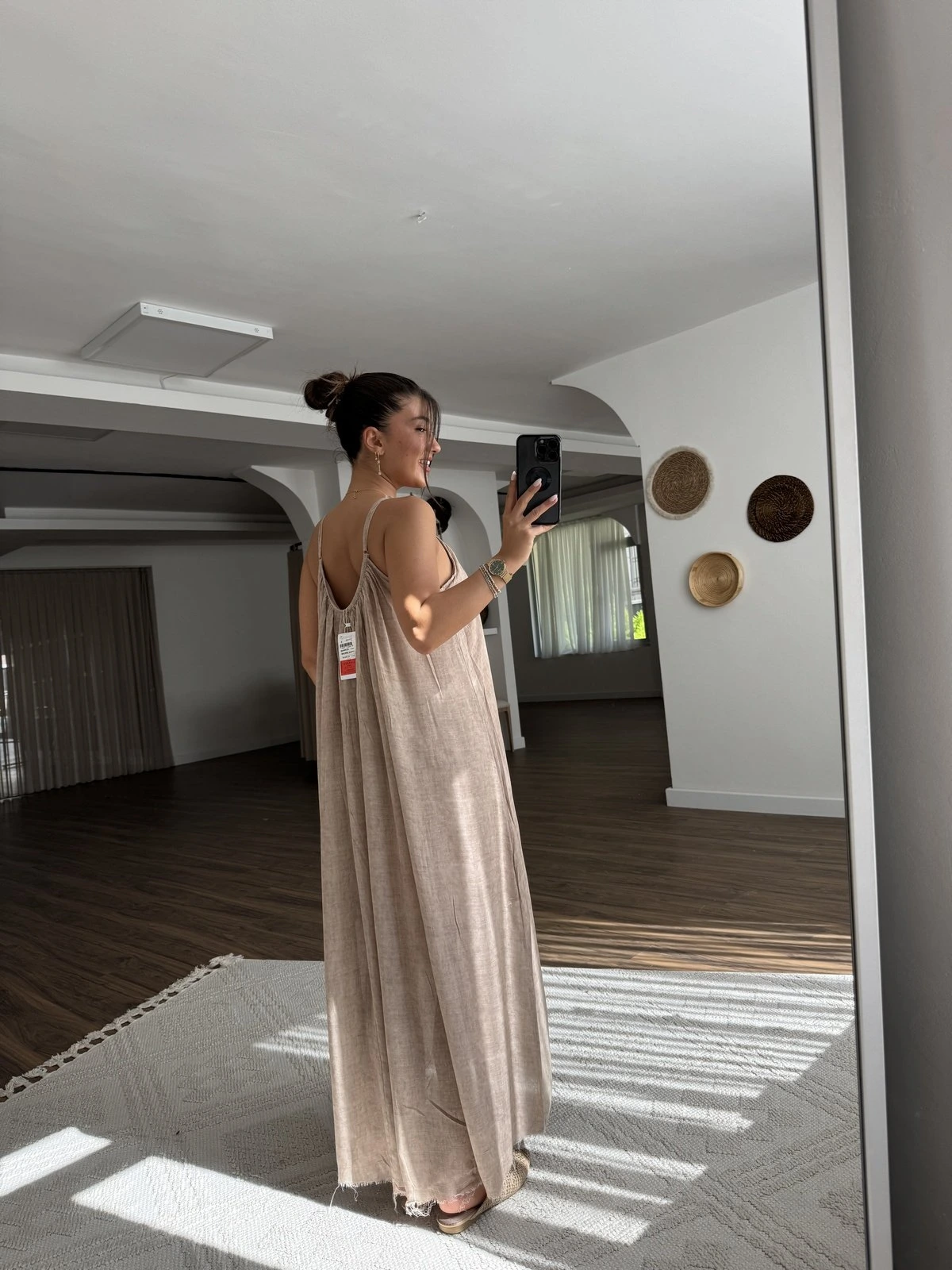 ASKI AYARLAMALI ETEĞİ VOLANLI TİRİL ELBİSE - KAHVE
