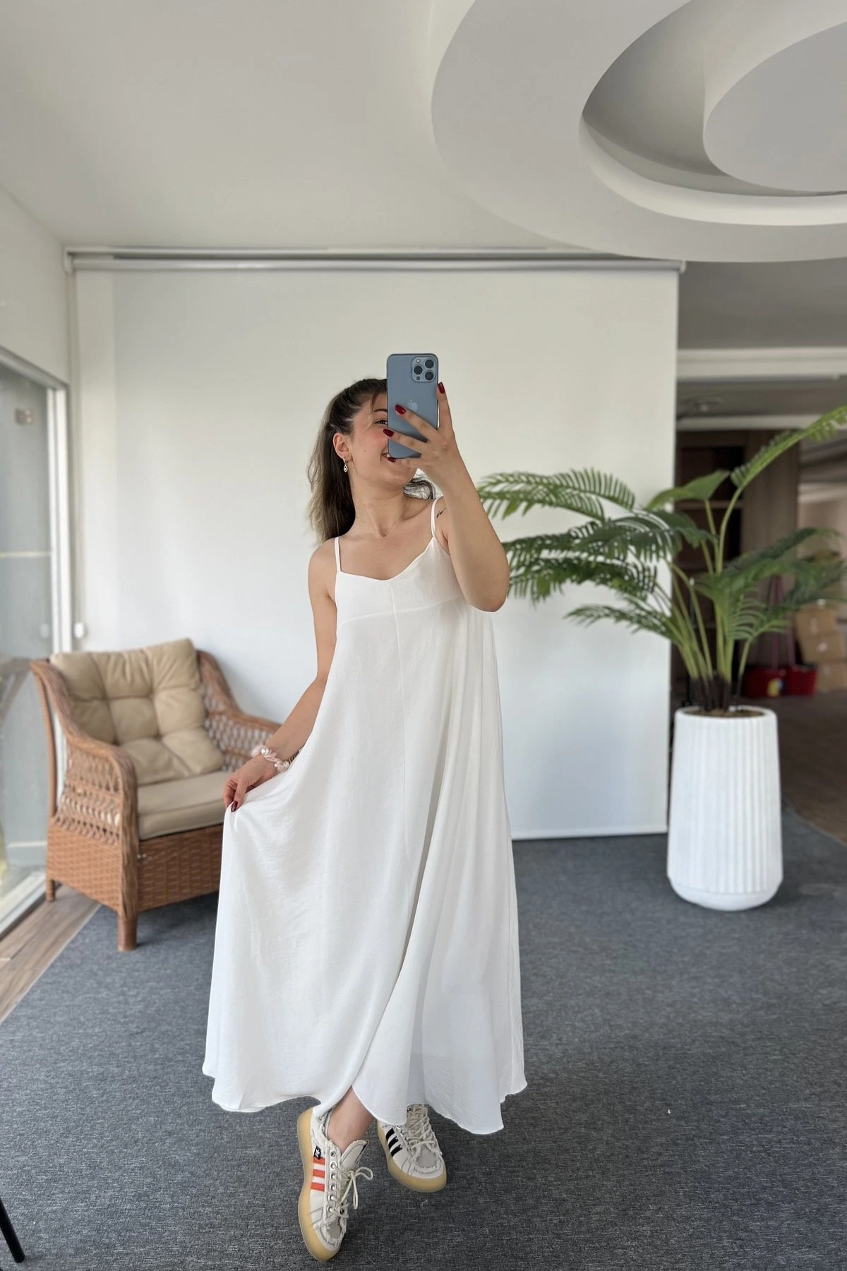 ASKI AYARLI ÖN VA SALAŞ ELBİSE – BEYAZ