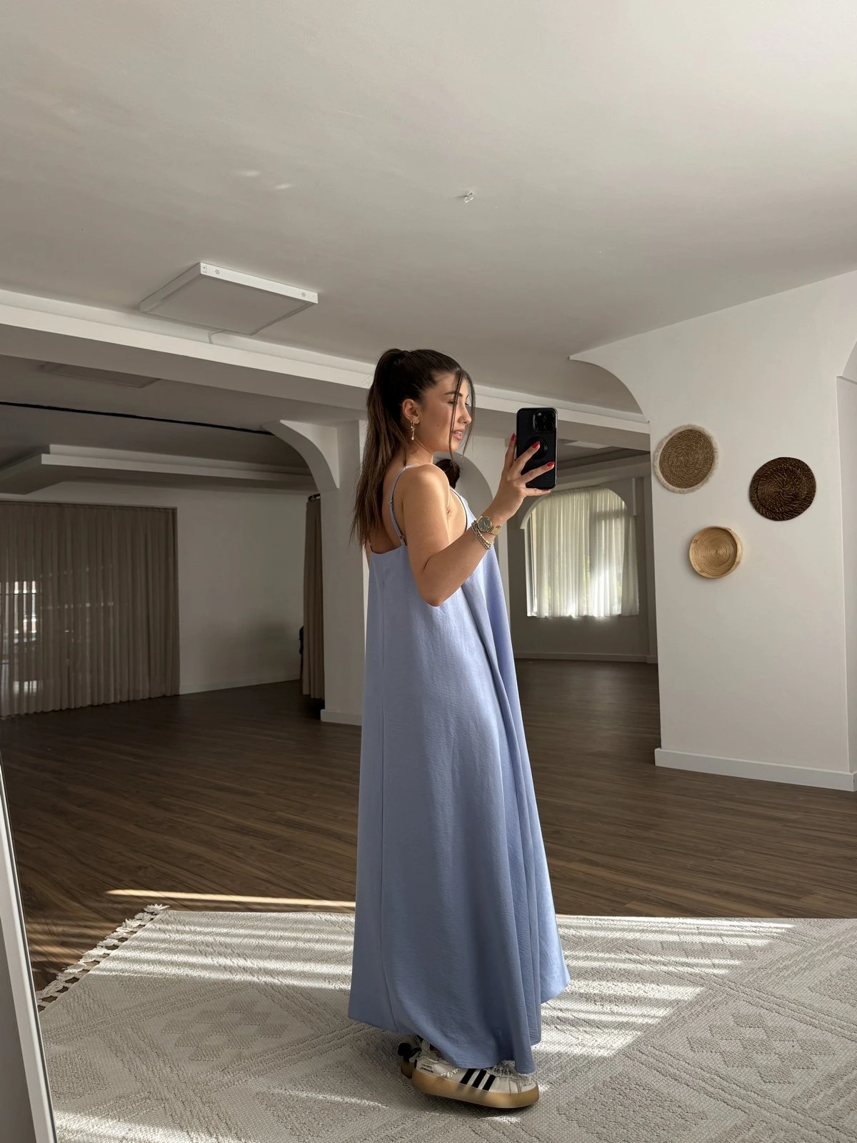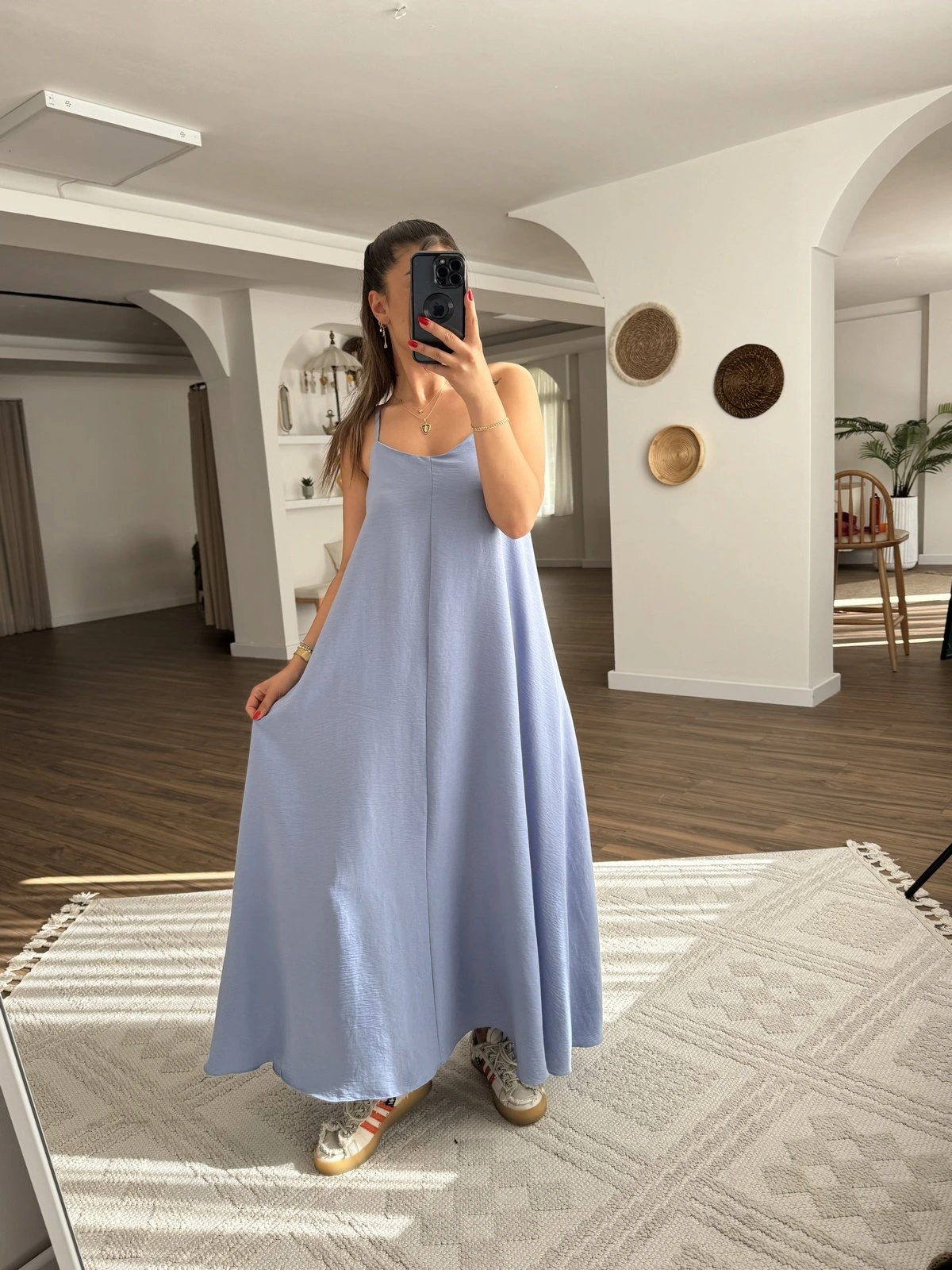 ASKI AYARLI V YAKA SALAŞ ELBİSE – BEBE MAVİ