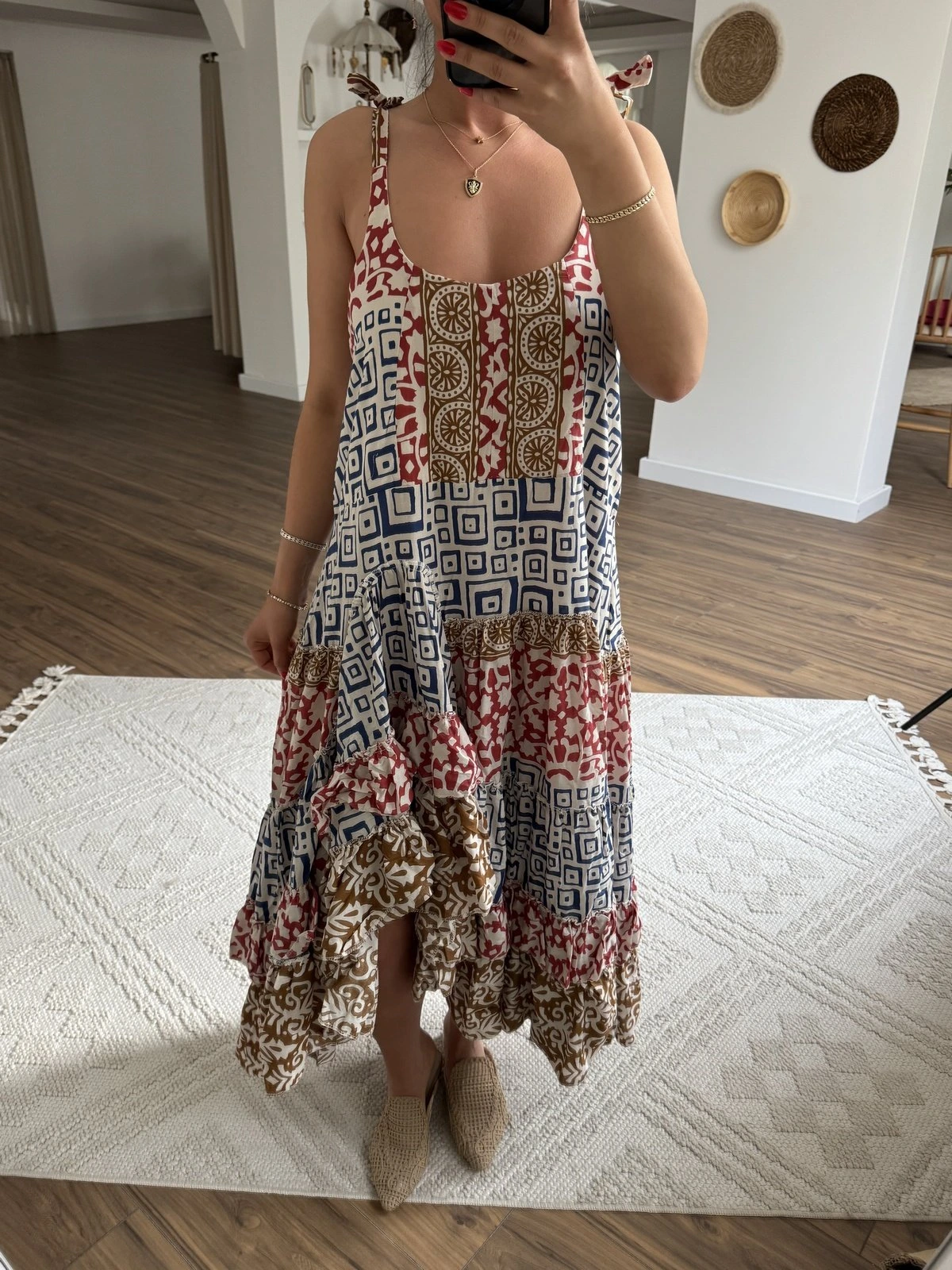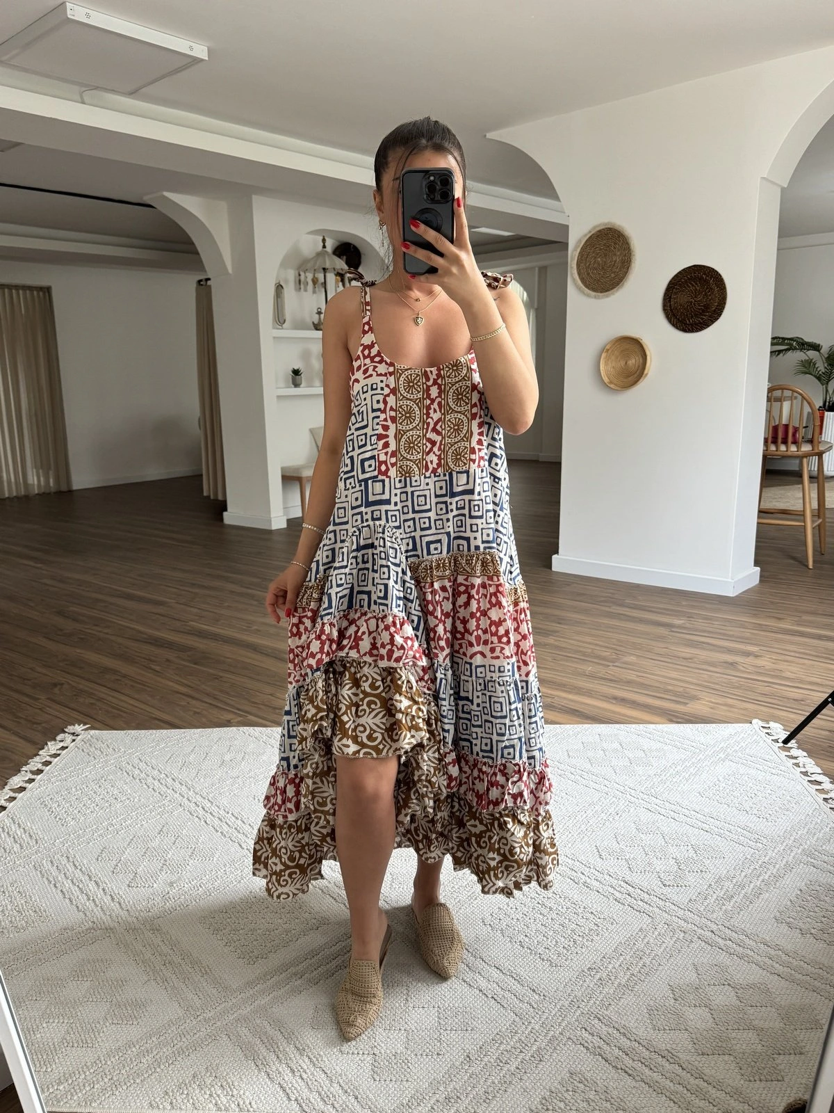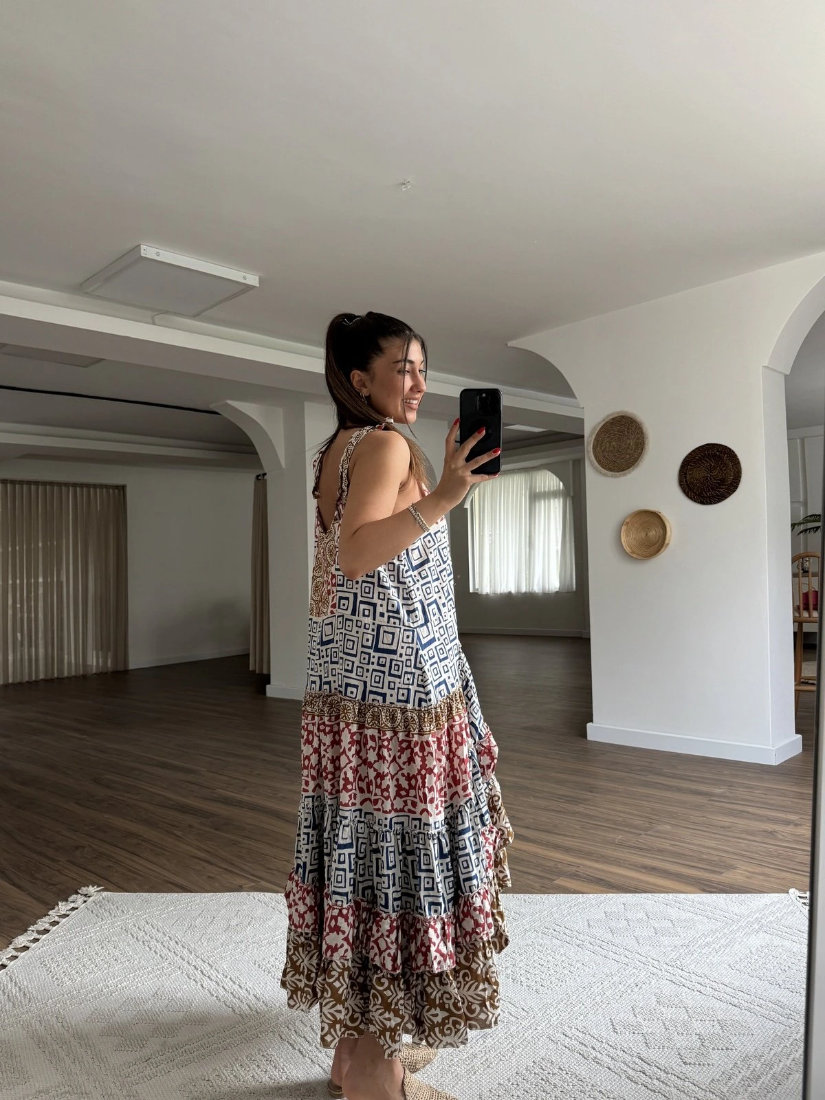 ASKI BAĞLAMALI ETEĞİ KATLI ASİMETRİK PAMUK ELBİSE – LACİVERT