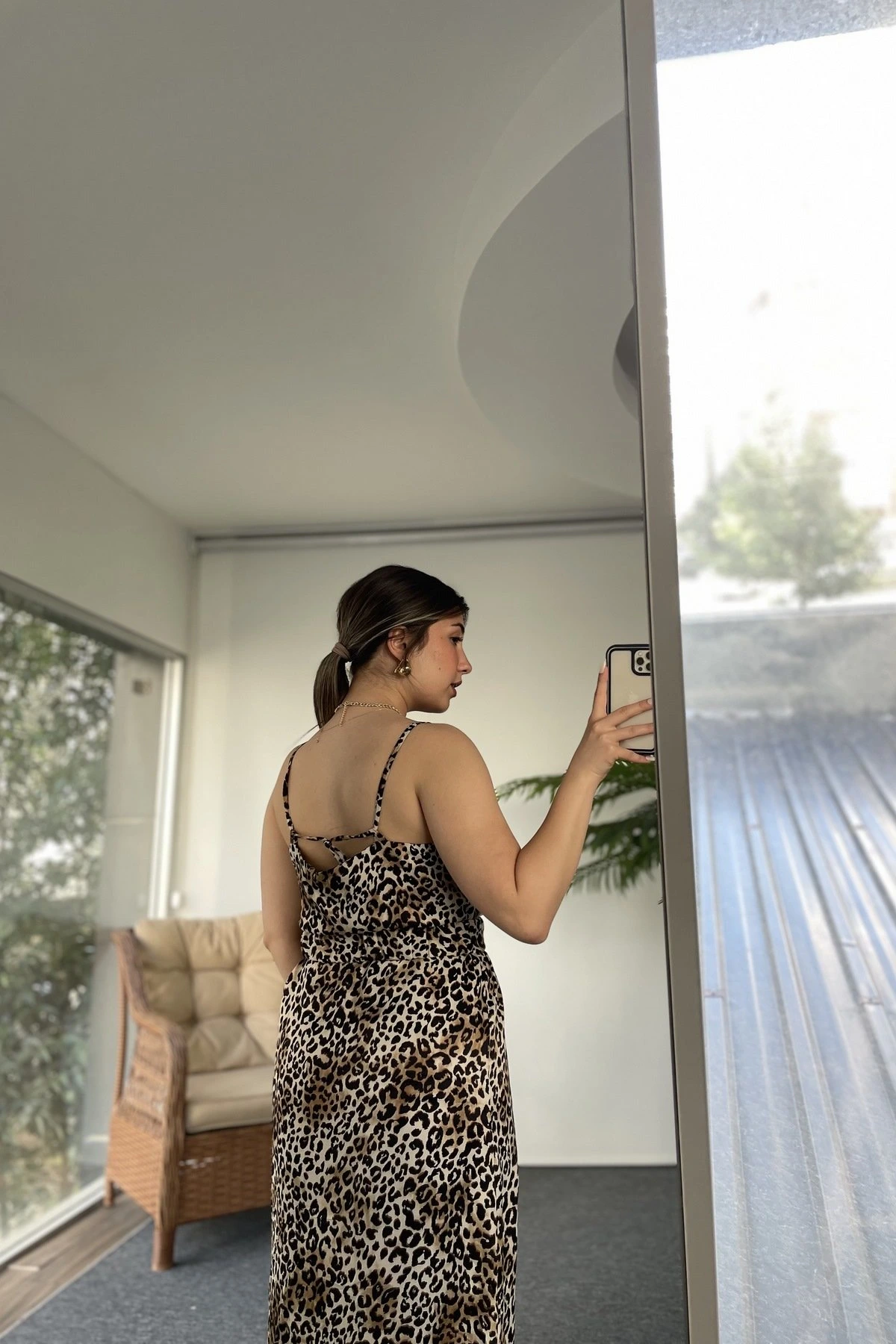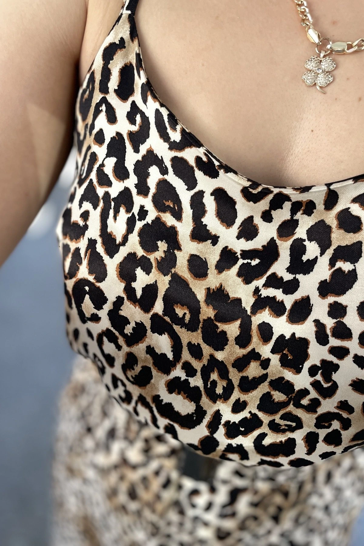 ASKI BAĞLAMALI YAN YIRTMAÇ LASTİK KEMER ELBİSE – LEOPAR