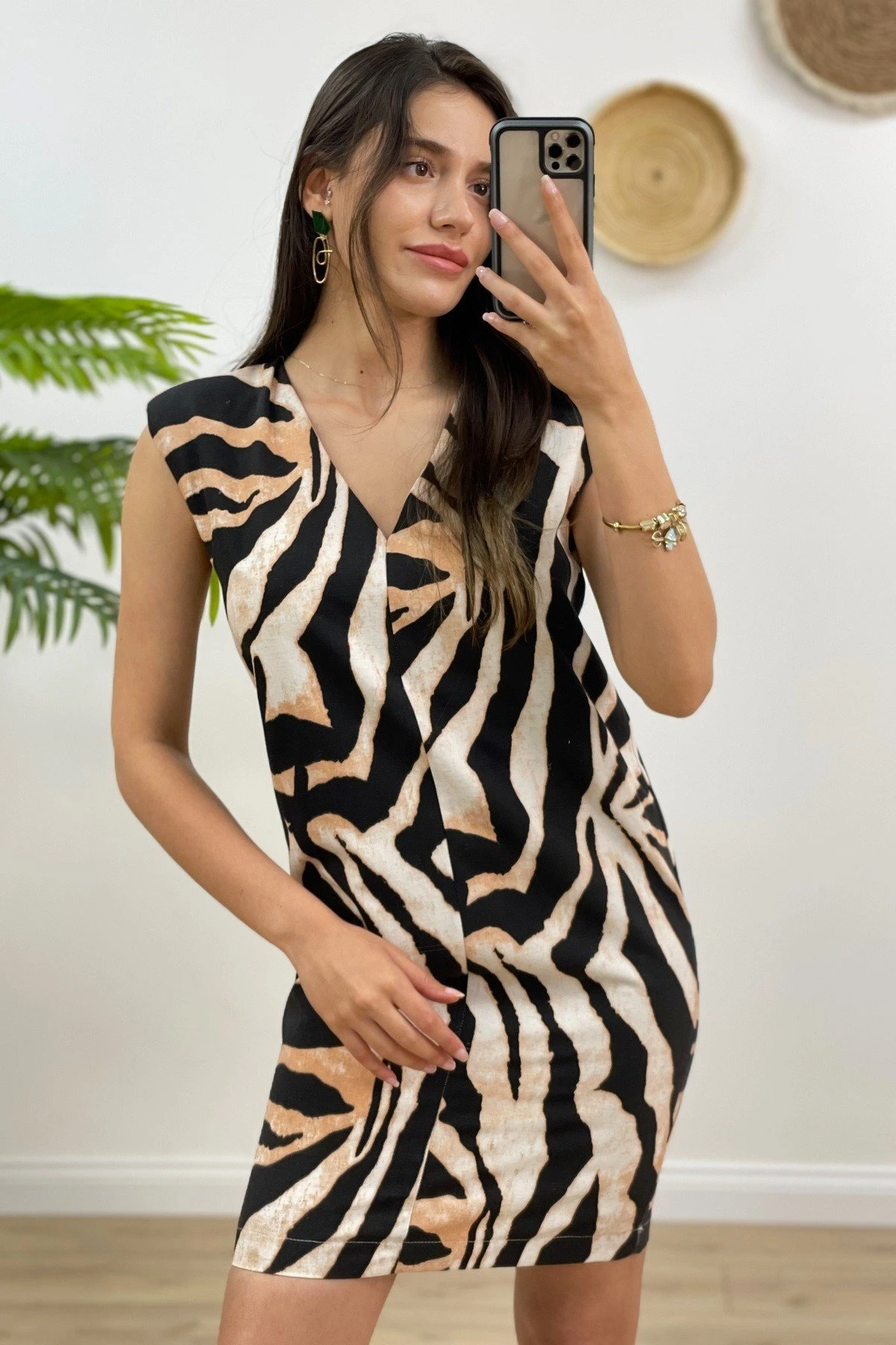 ASTARLI V YAKA VATKALI KETEN ELBİSE. – SİYAH