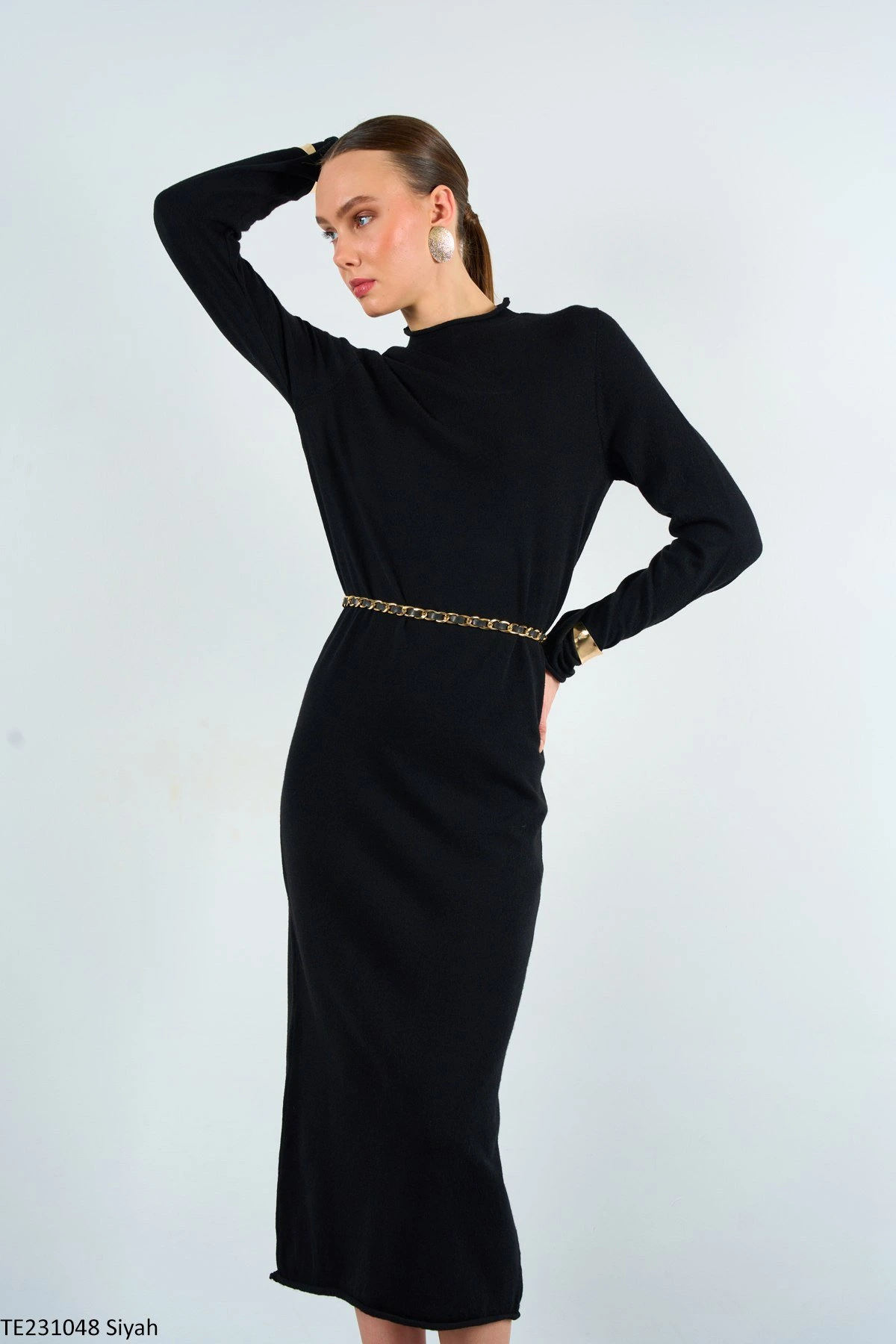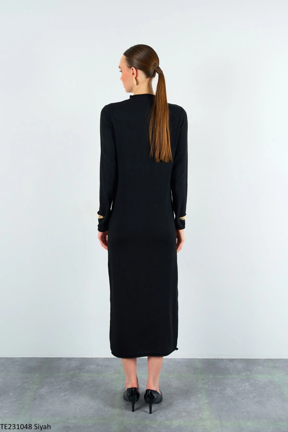 BASİC VİSKON UZUN TRİKO ELBİSE – SİYAH