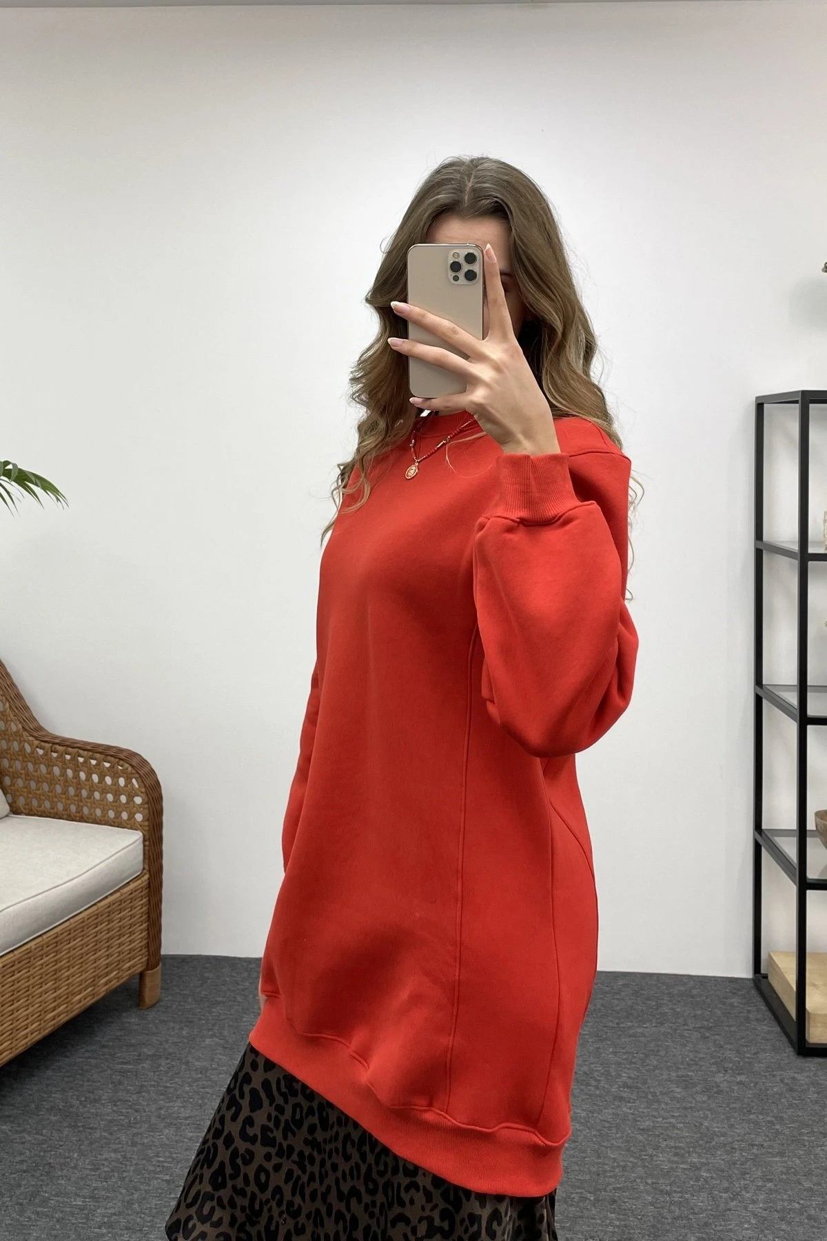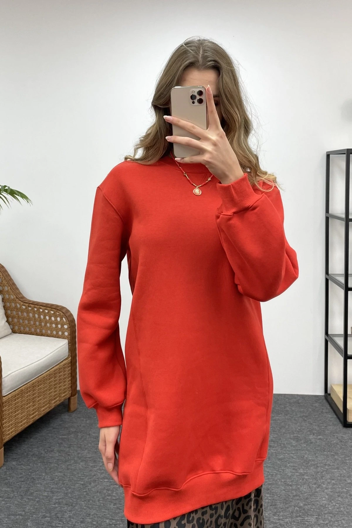 BİSİKLET YAKA SWEAT ELBİSE – KIRMIZI