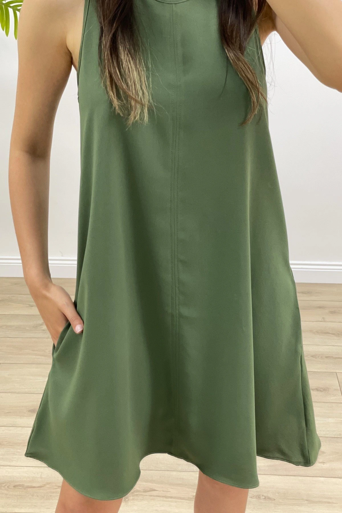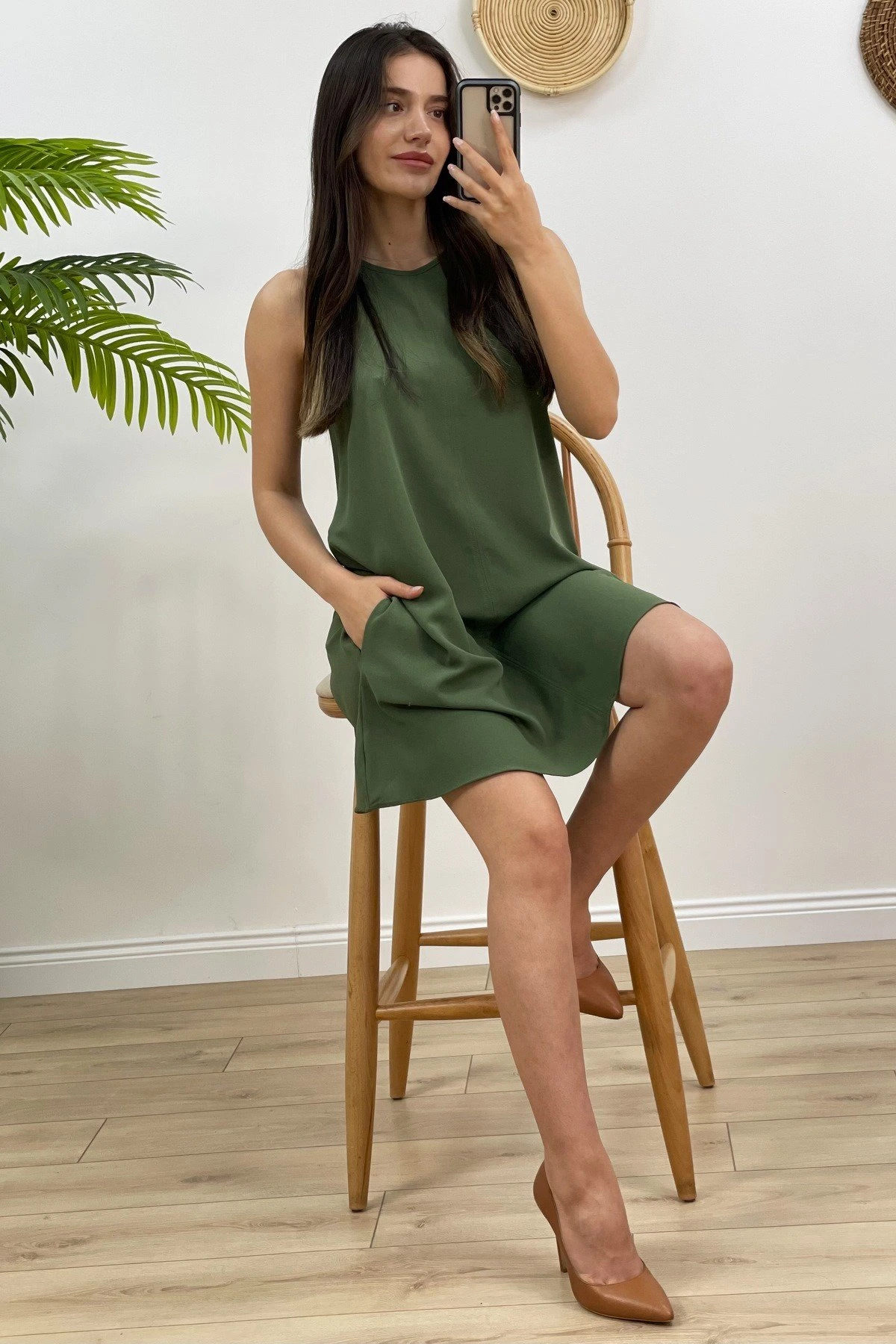 CEPLİ SIFIR KOL ELBİSE – KOYU HAKİ