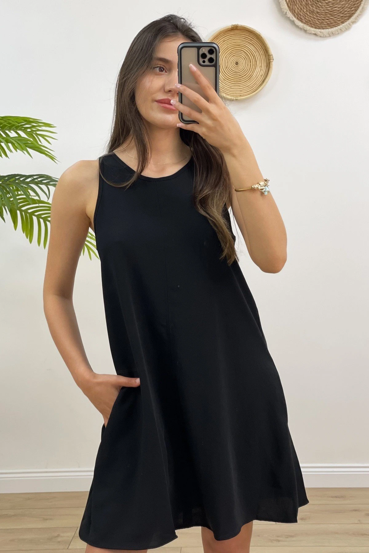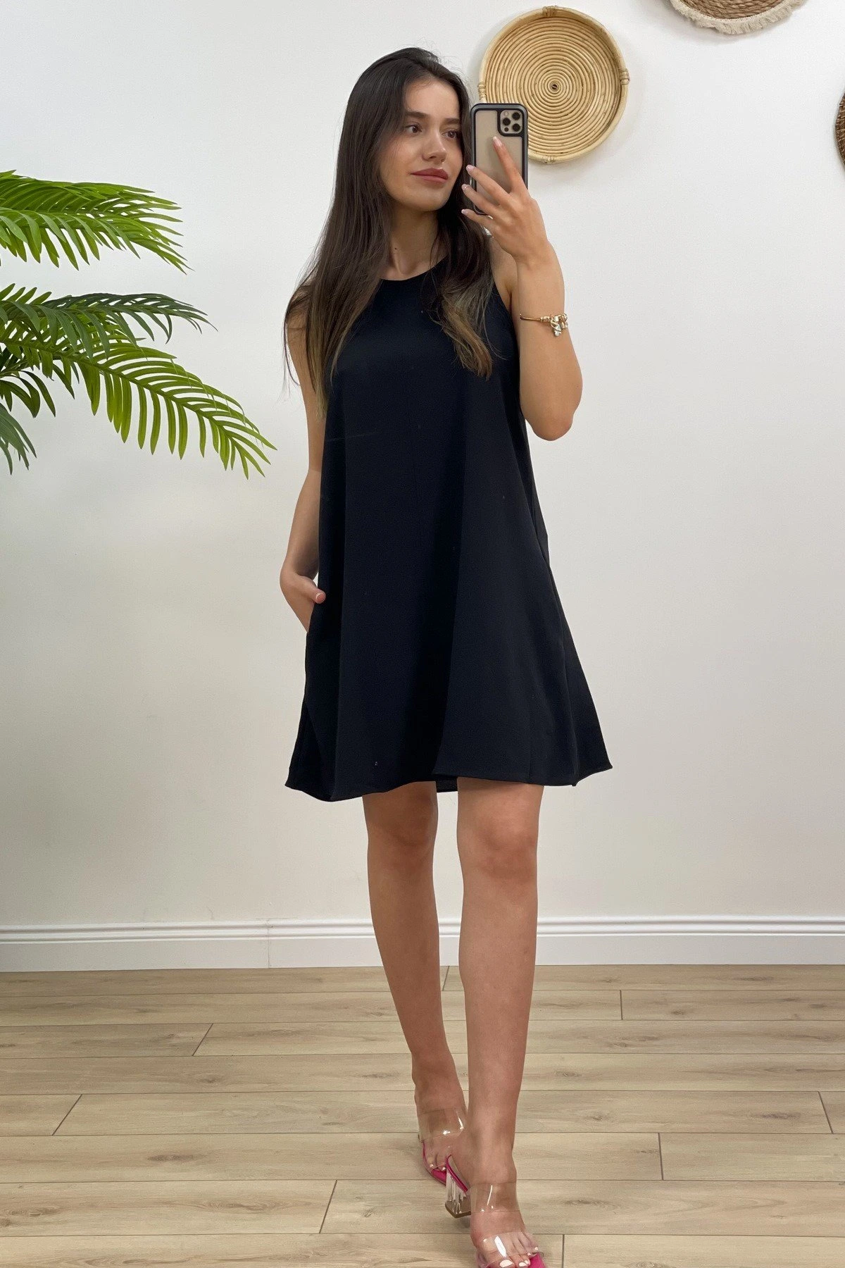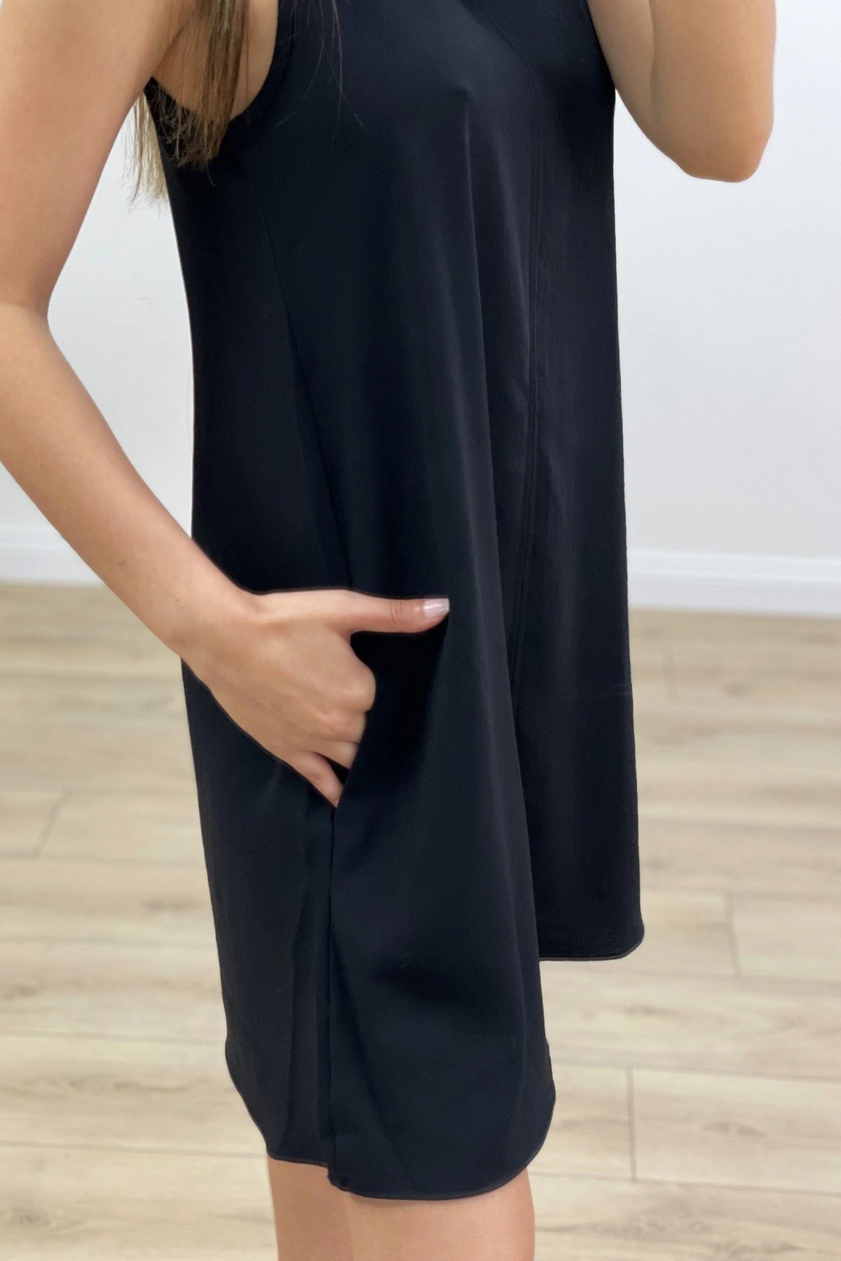 CEPLİ SIFIR KOL ELBİSE – SİYAH