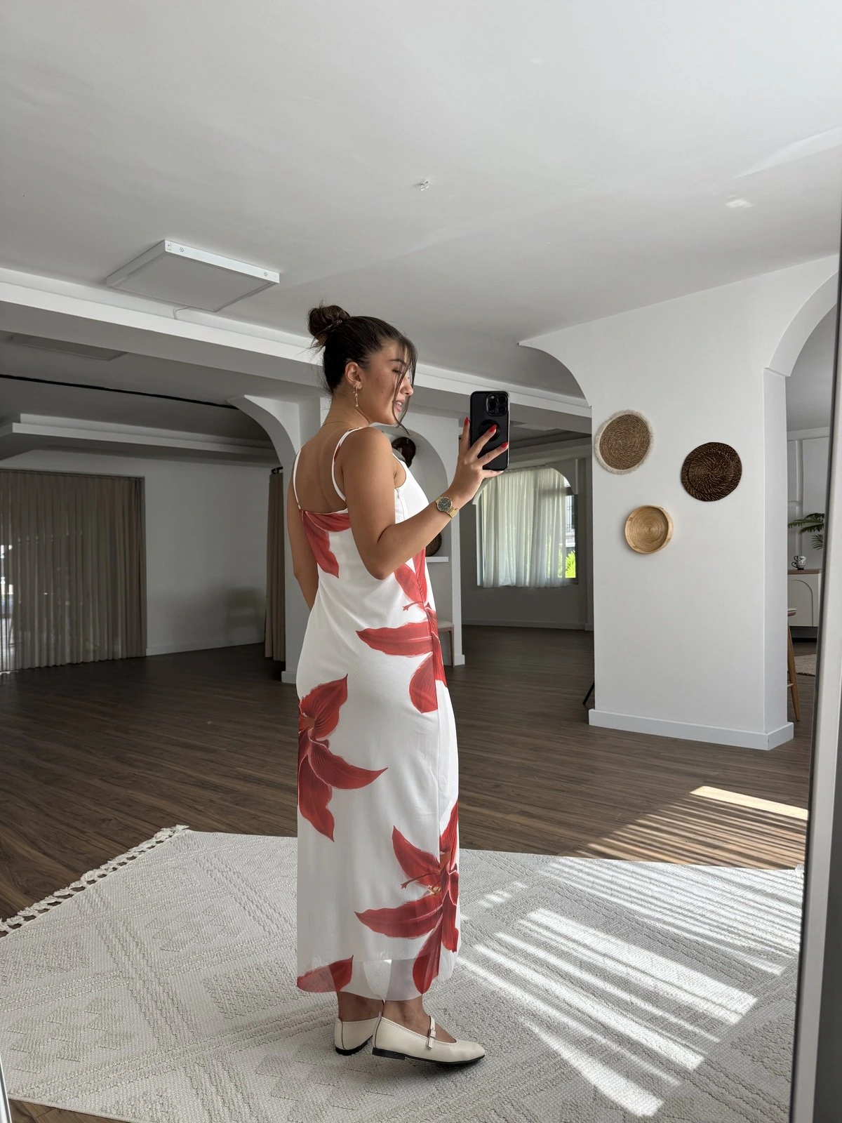 ÇİÇEK DESEN LİKRALI TAM BOY ASTARLI ELBİSE – BEYAZ