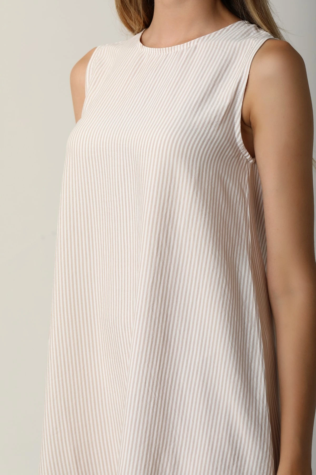 ÇİZGİLİ SIFIR KOL ELBİSE – VİZON