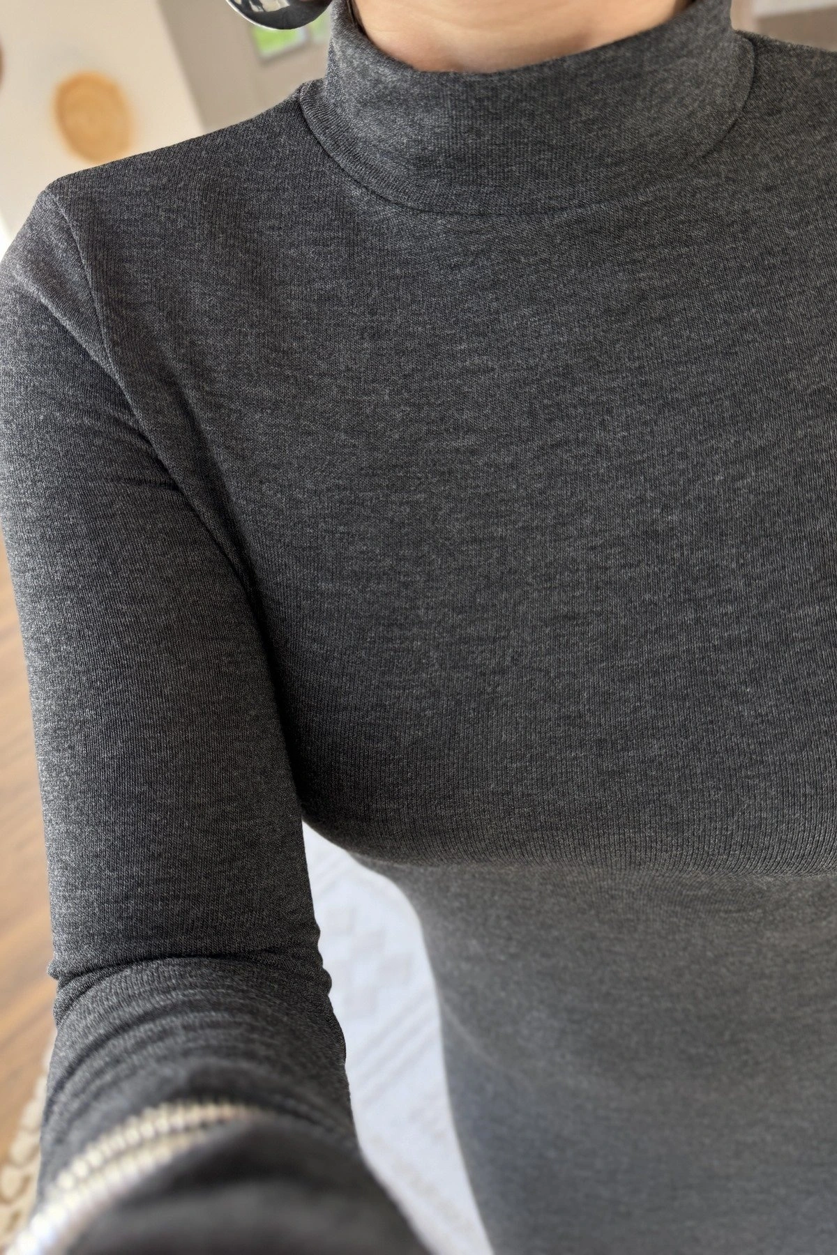 DİK YAKA VİSKON LİKRALI UZUN ELBİSE – ANTRASİT
