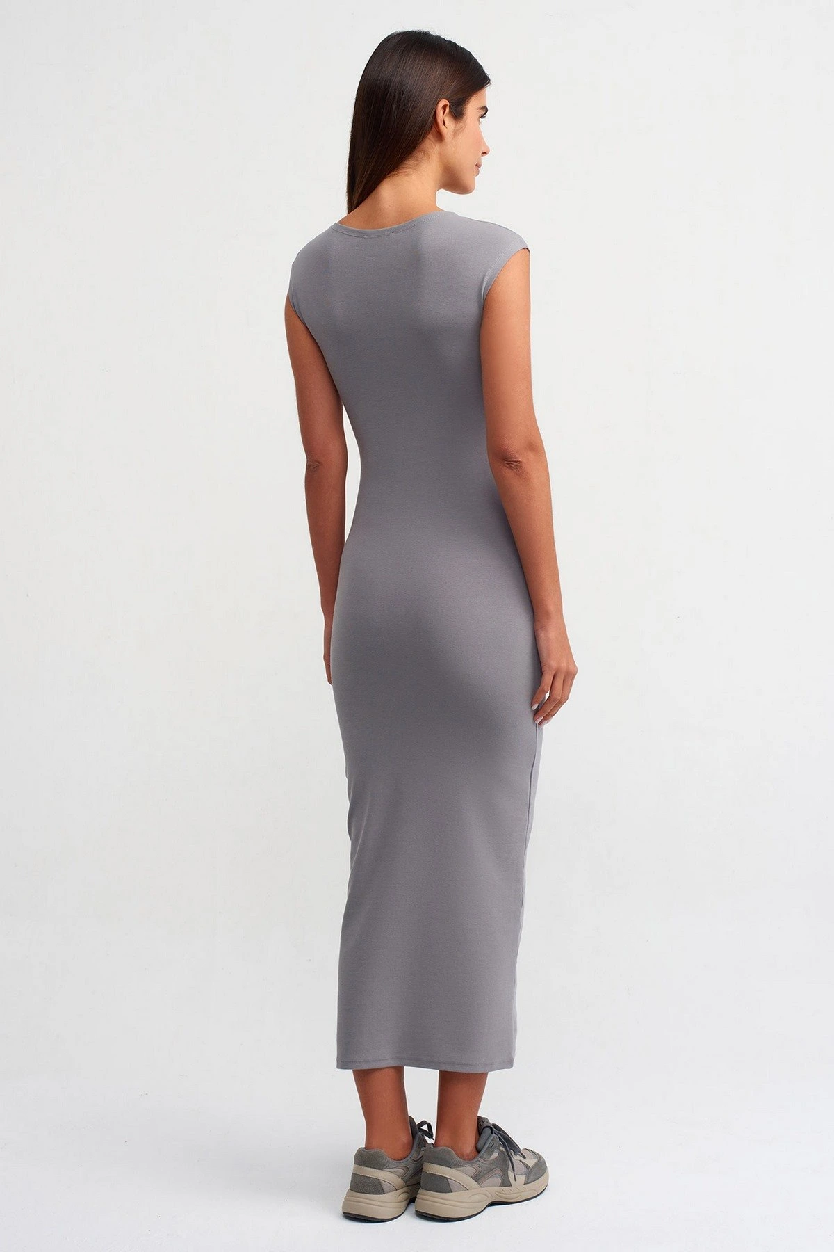 DÜŞÜK KOL PAMUK LİKRA ELBİSE – GRİ