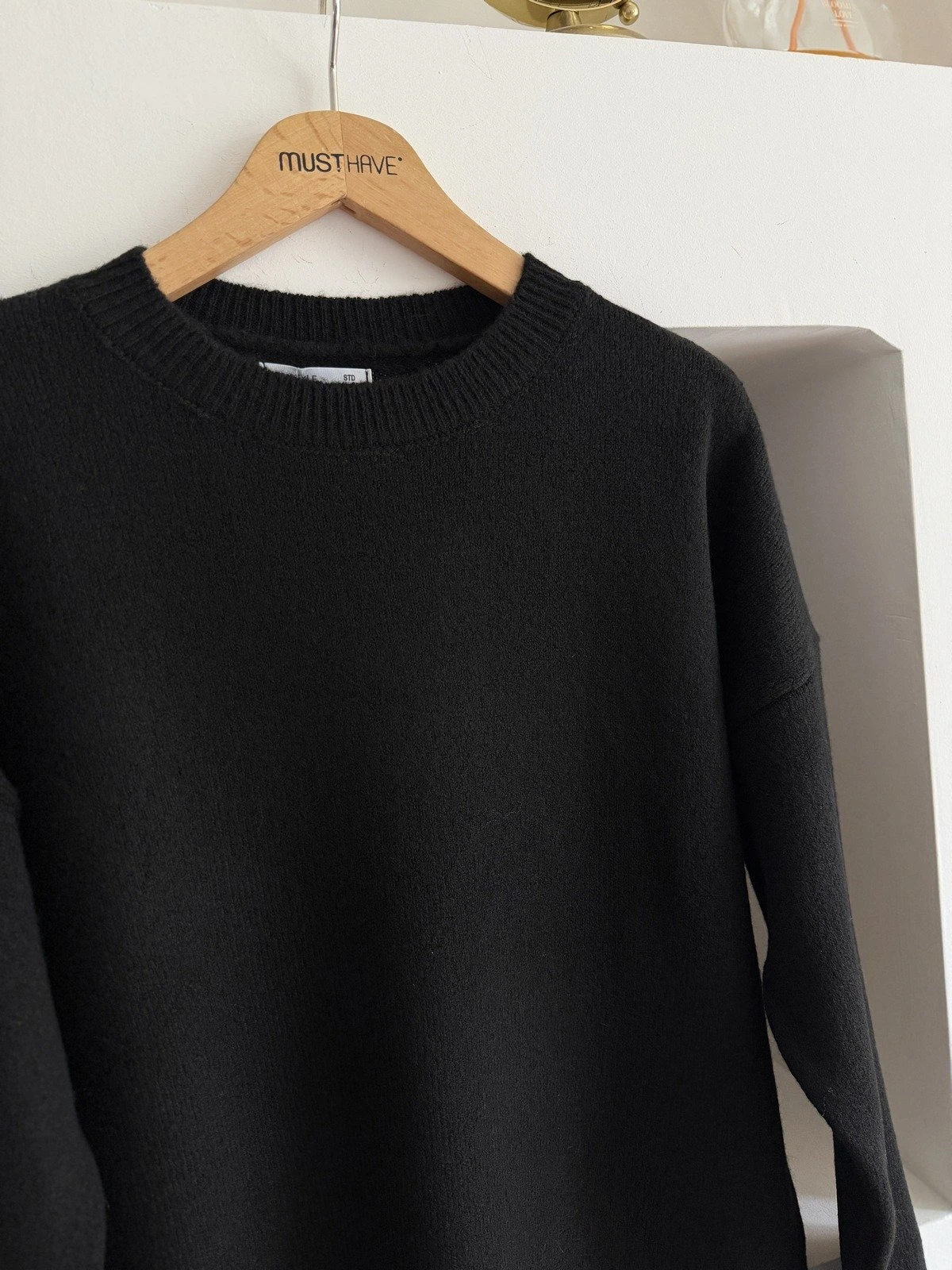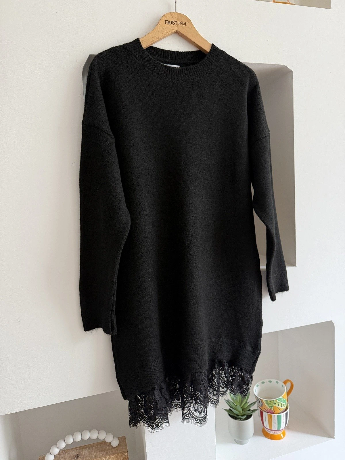 ETEK UCU DANTEL BİSİKLET YAKA TRİKO ELBİSE – SİYAH