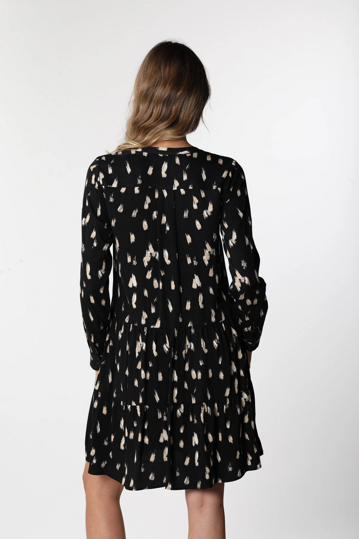İTHAL FIRÇA DESEN ROBADAN ELBİSE – SİYAH