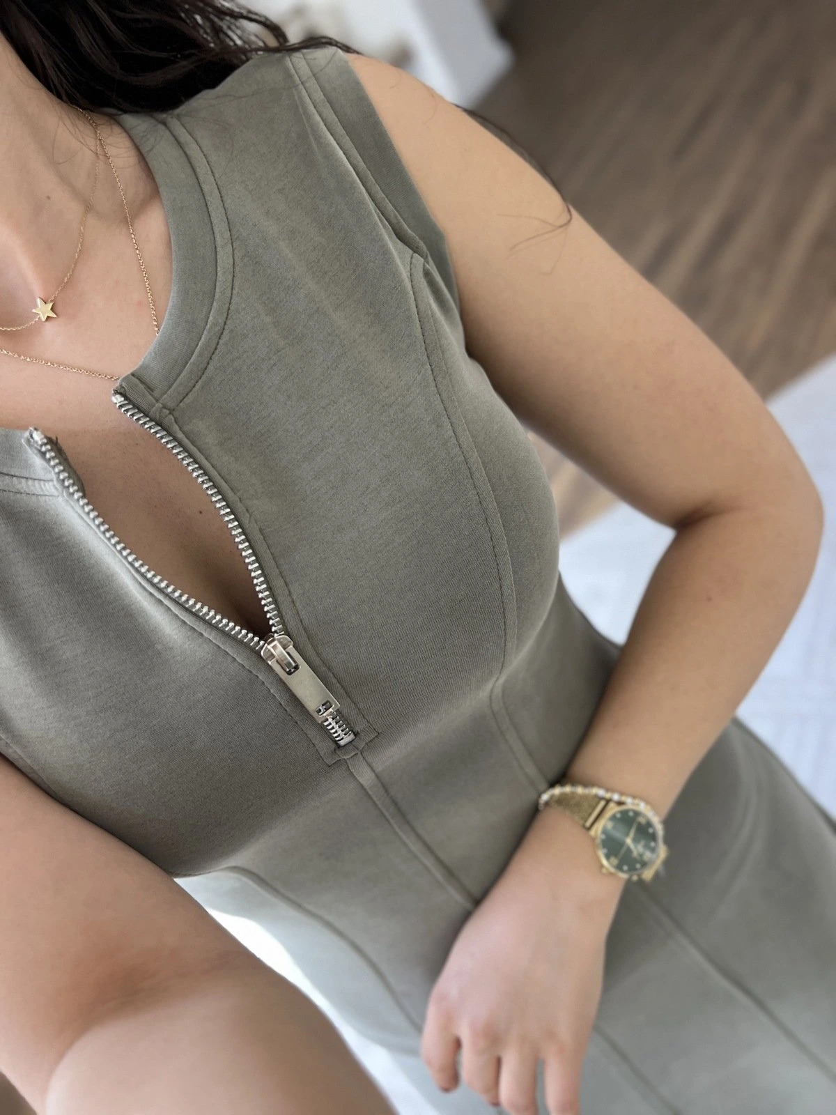 JAPONE KOL FERMUARLI PARÇA DİKİŞ UZUN PAMUK ELBİSE – HAKİ