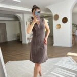 JAPONE KOL YAKA FERMUARLI DİKİŞ DETAY PAMUK ELBİSE – KAHVE