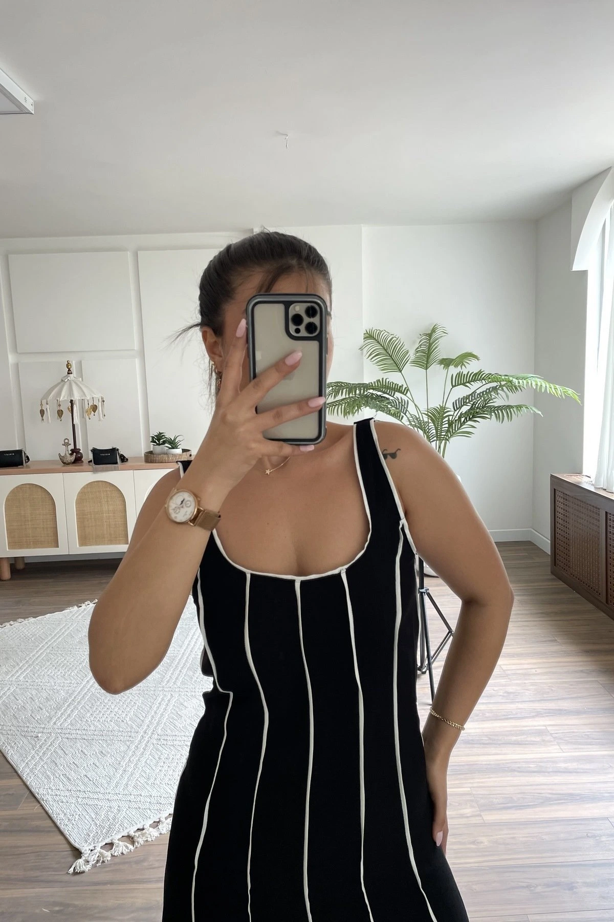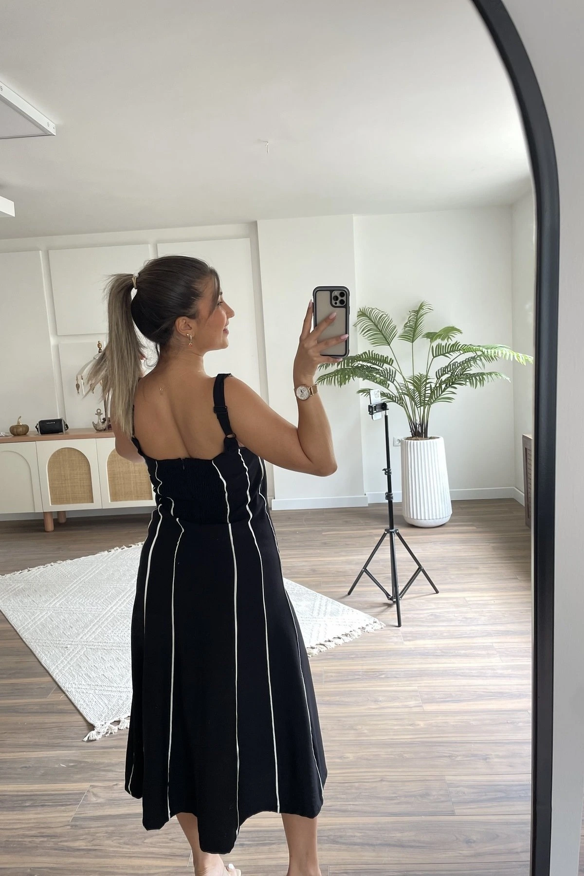 KALIN ASKI AYARLI BİYELİ VOLAN PAMUK ELBİSE – SİYAH