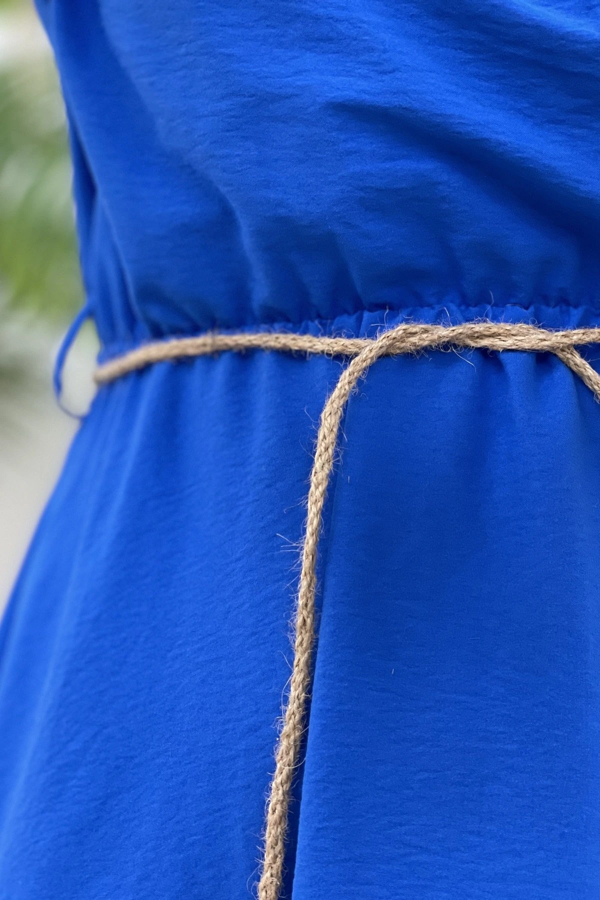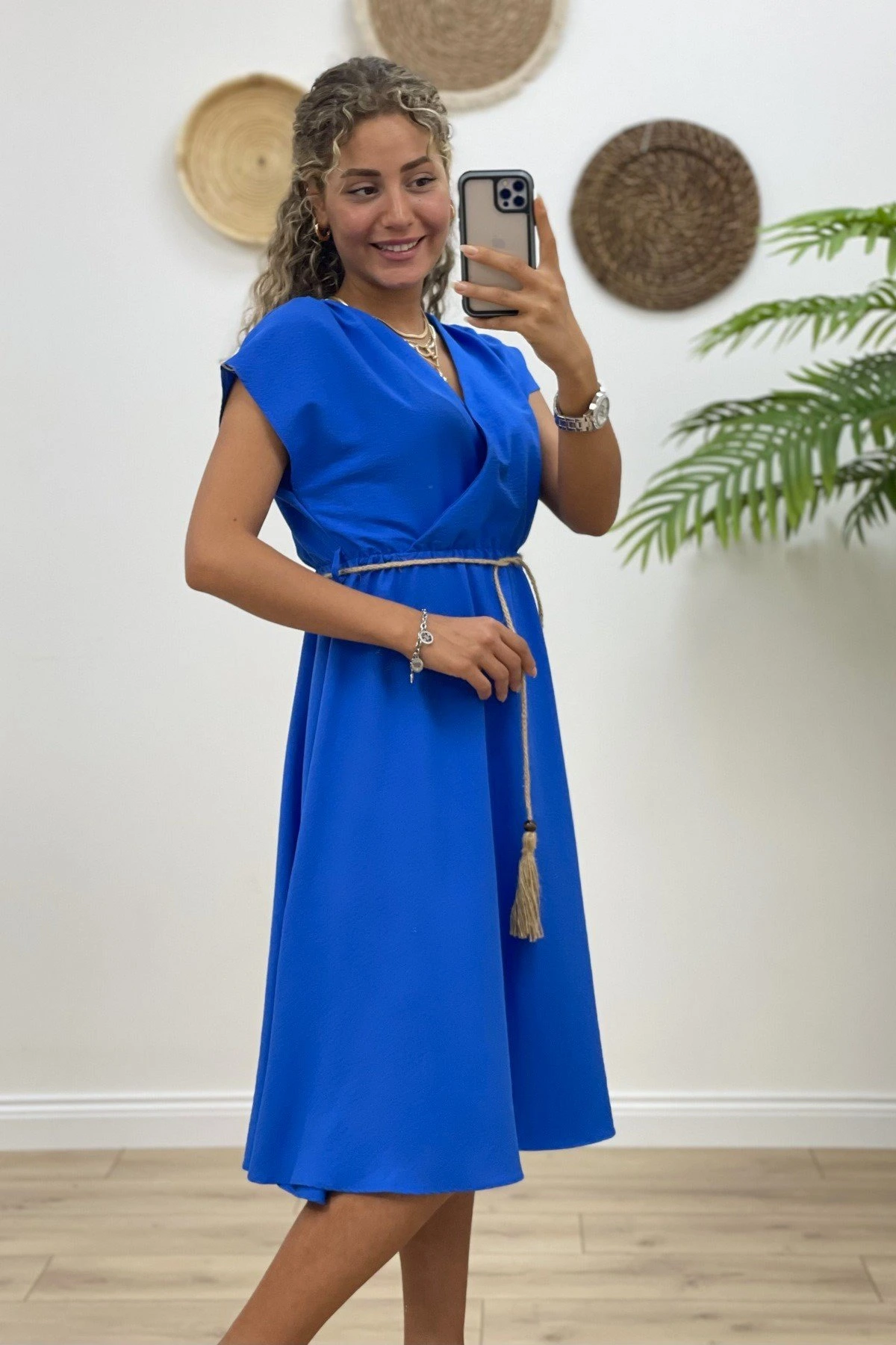 KRUVAZE BEL LASTİKLİ MİDİ ELBİSE – SAKS