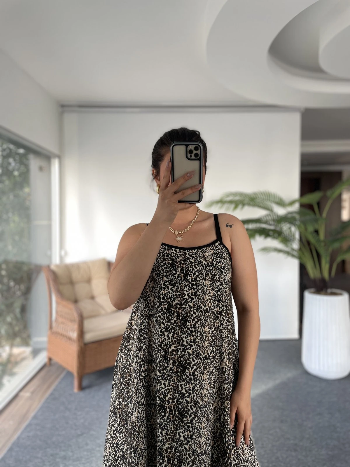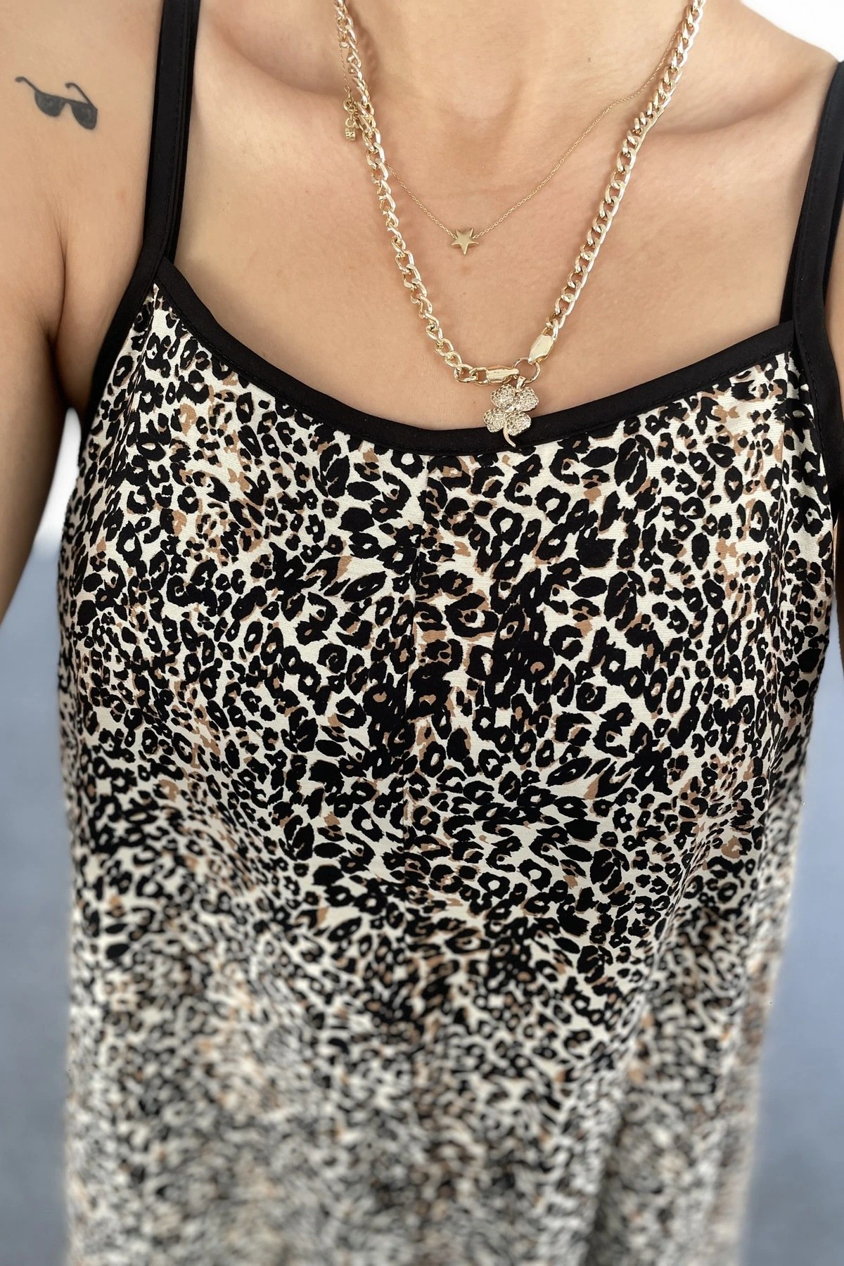 LEOPAR ASKI AYARLAMALI PAMUK KARIŞIM ELBİSE – LEOPAR
