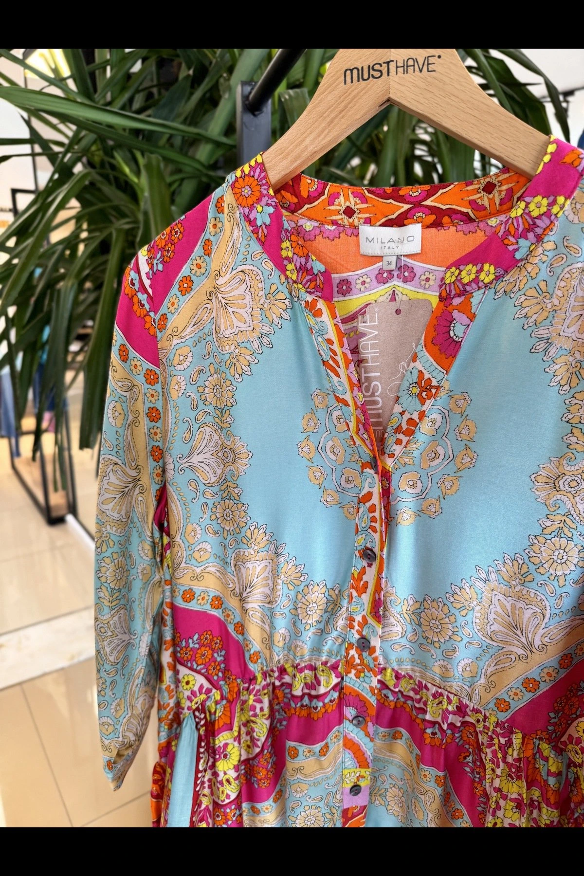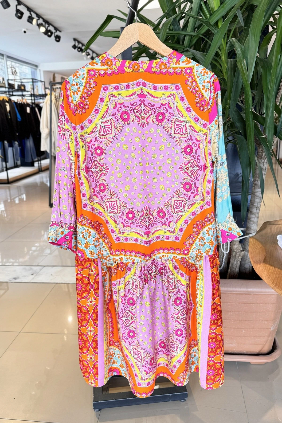 MARKA DESENLİ TRUVAKAR KOL VİSKON GÖMLEK ELBİSE – ŞAL DESEN