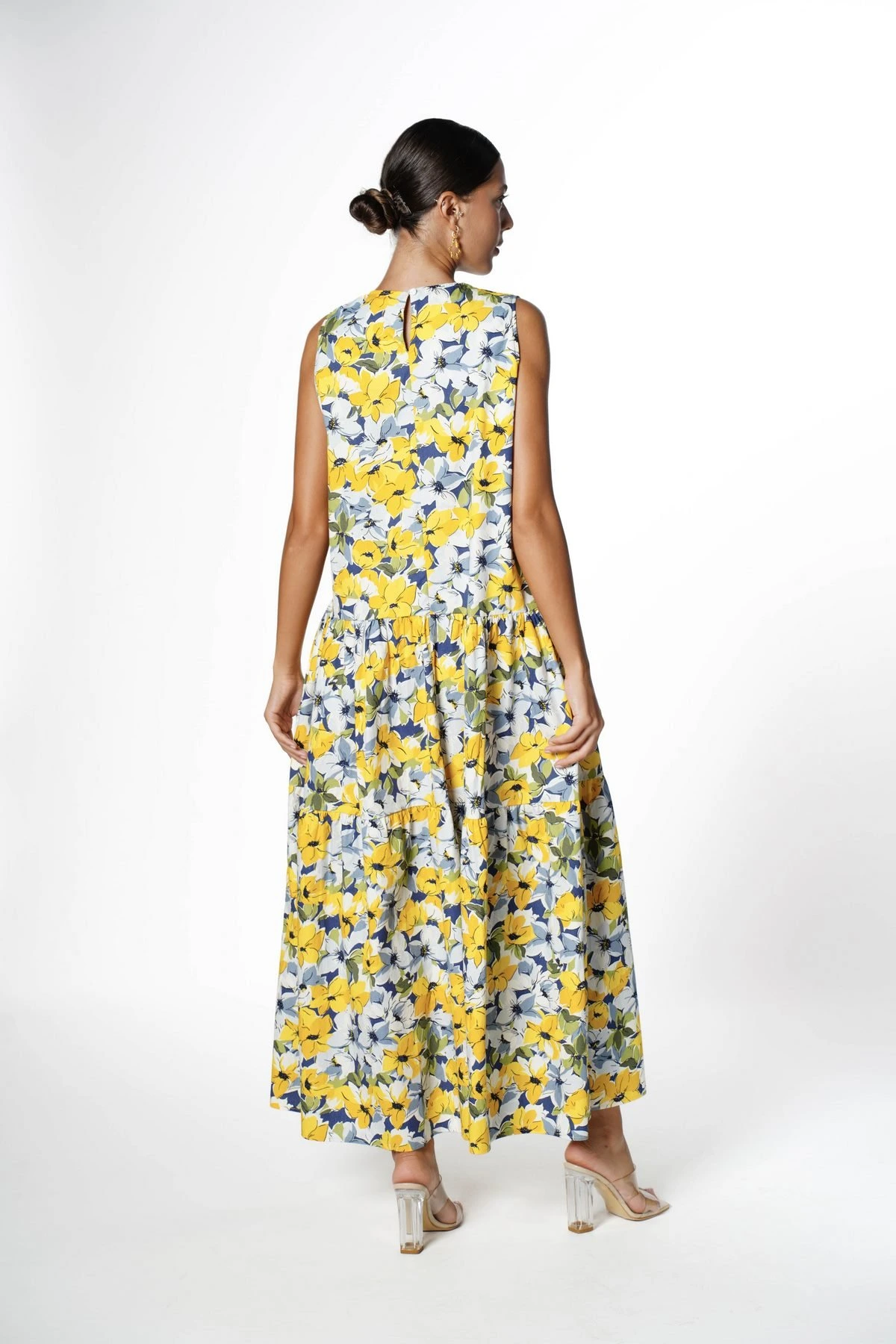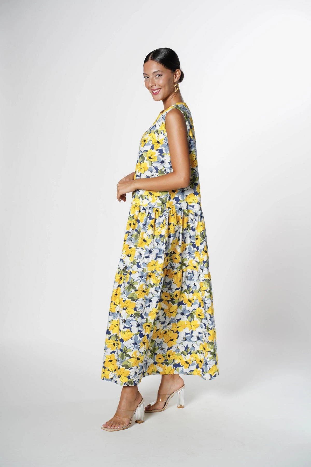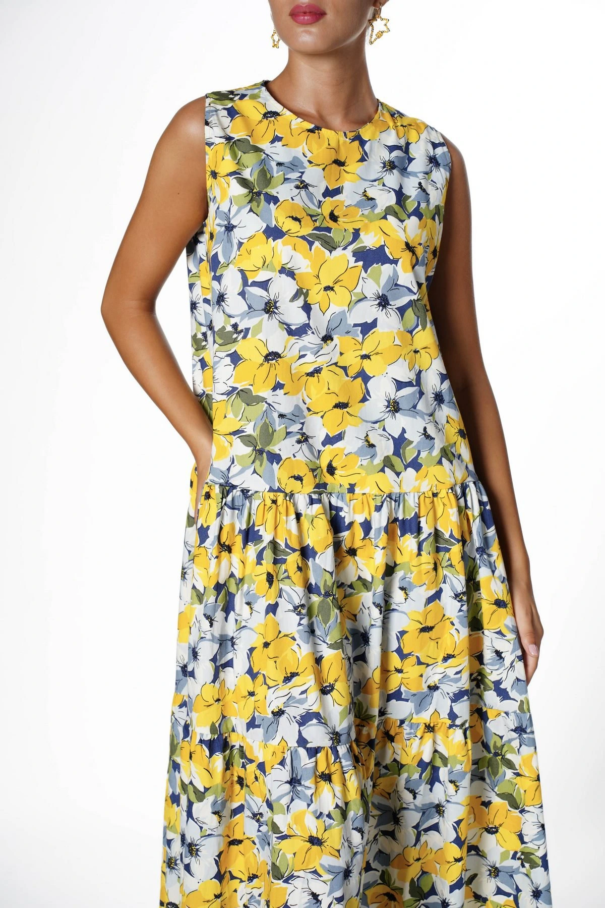 SIFIR KOL ETEĞİ KATLI MAXİ BOY RLBİSE – ÇİÇEK DESEN