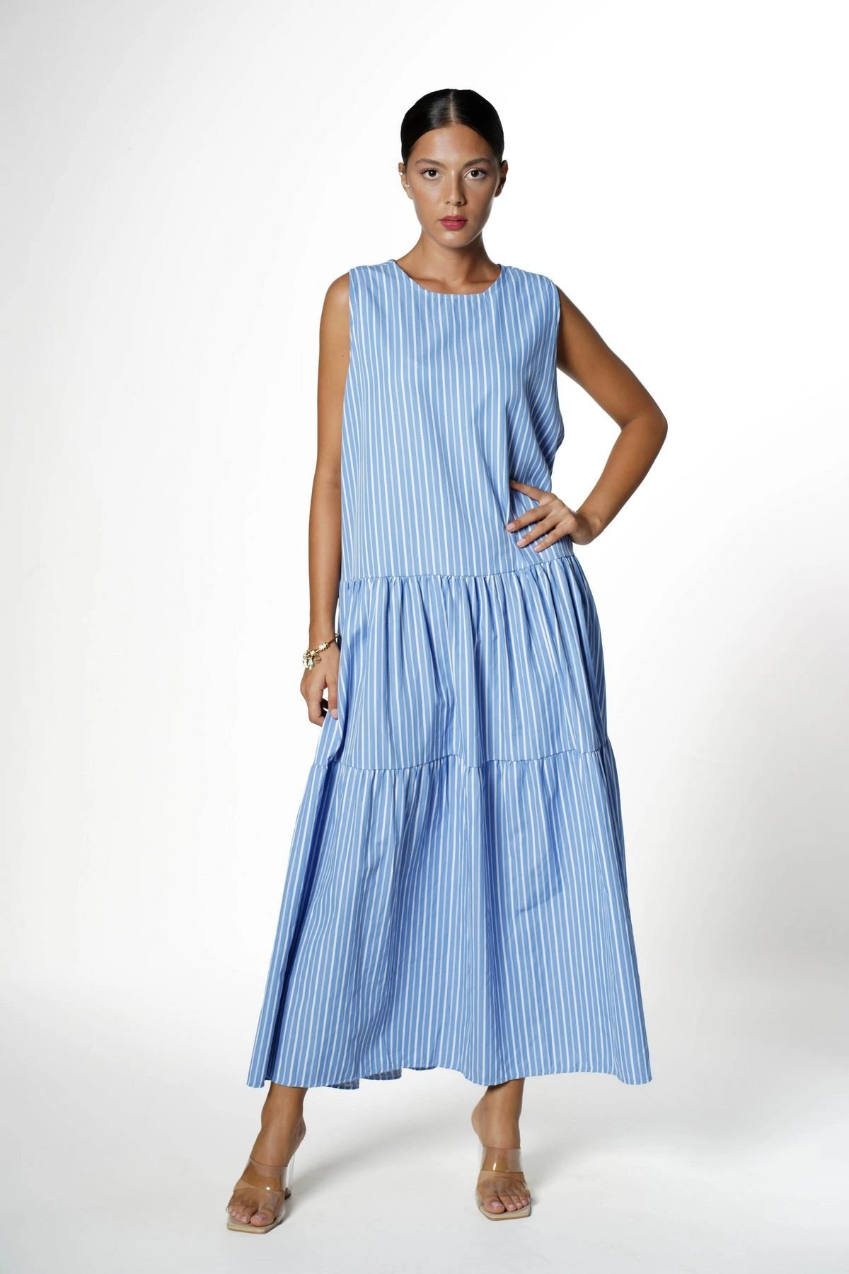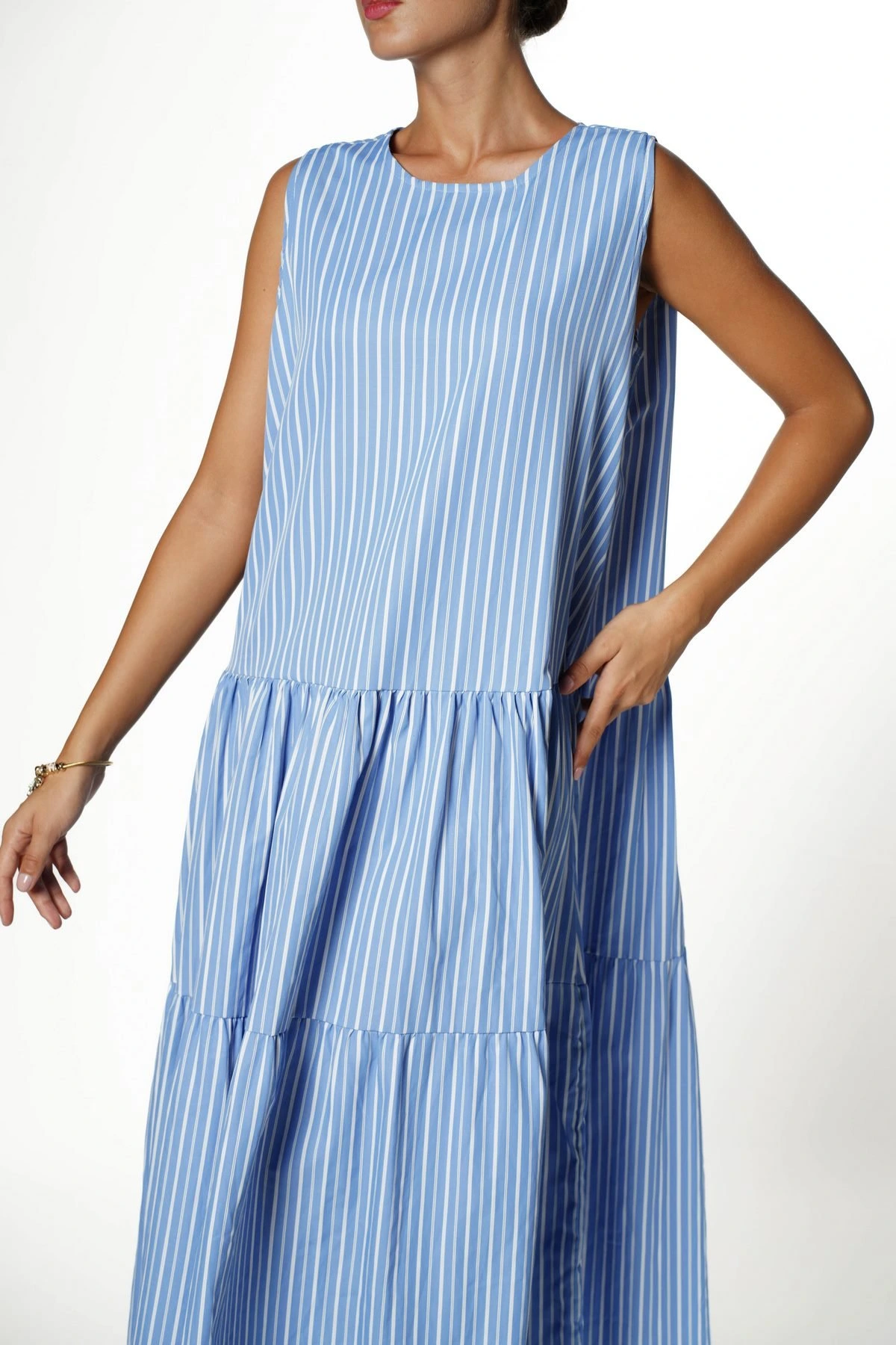 SIFIR KOL ETEĞİ KATLI MAXİ BOY RLBİSE – MAVİ BEYAZ