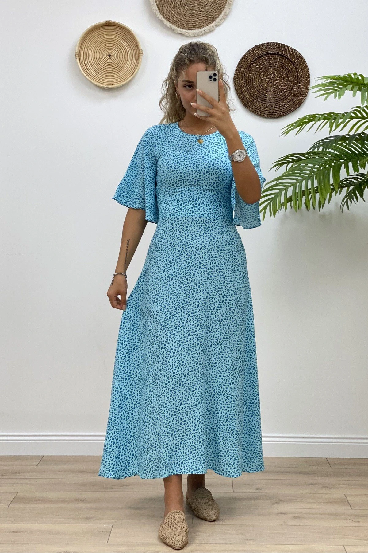 SIRT BAĞCIKLI KOL VOLAN ELBİSE – TURKUAZ