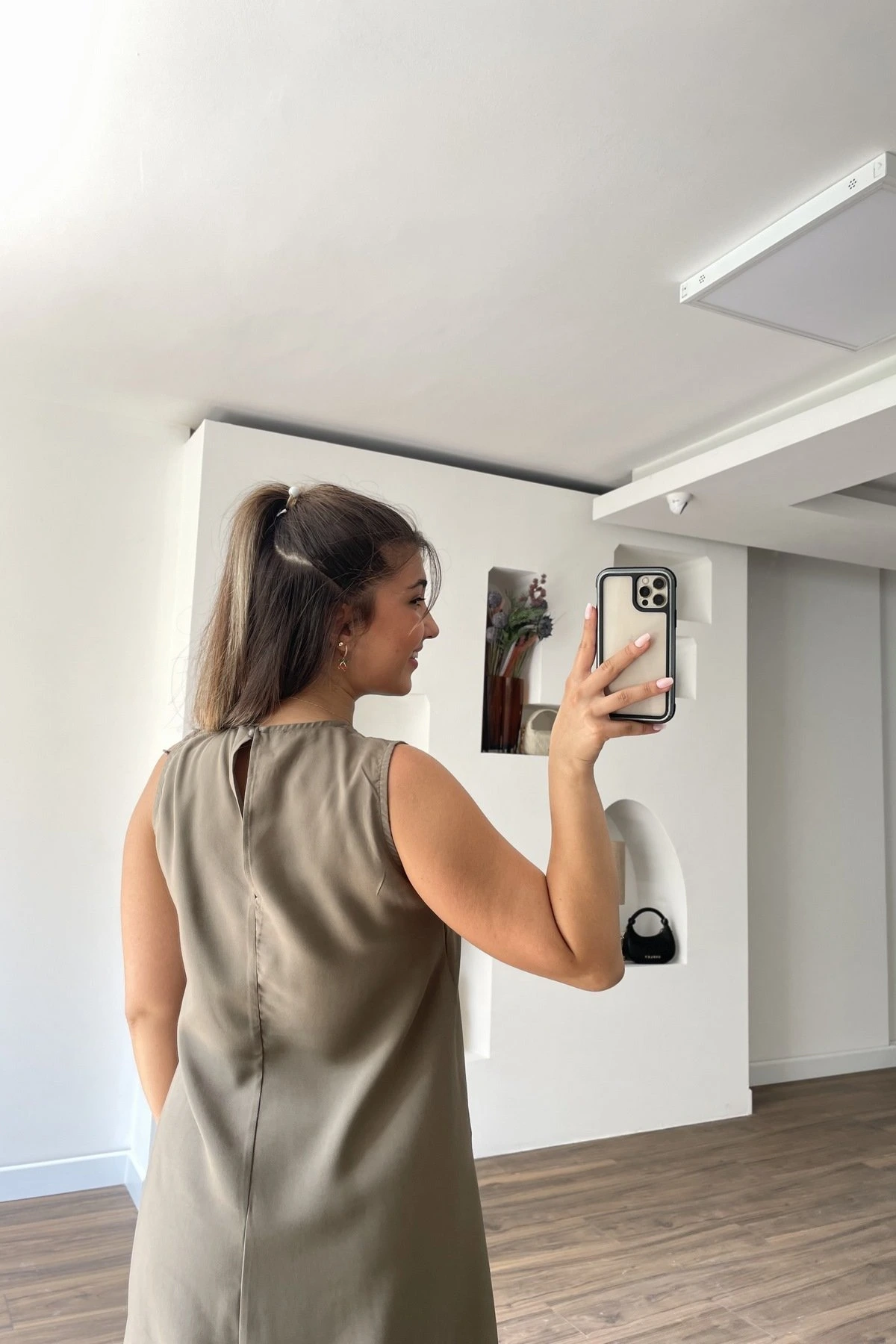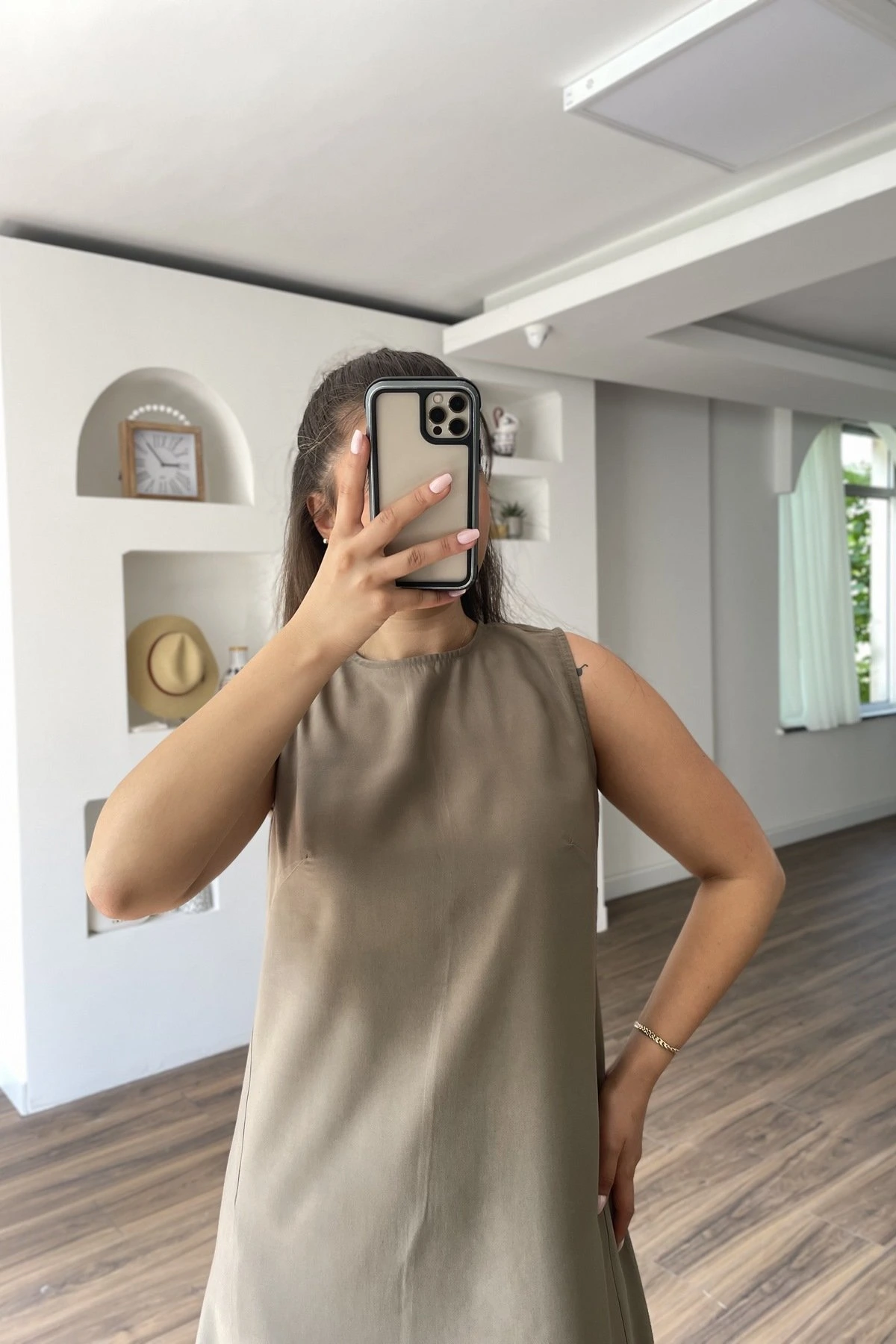 SIRT PENCERE SIFIR KOL TENCEL ELBİSE – HAKİ