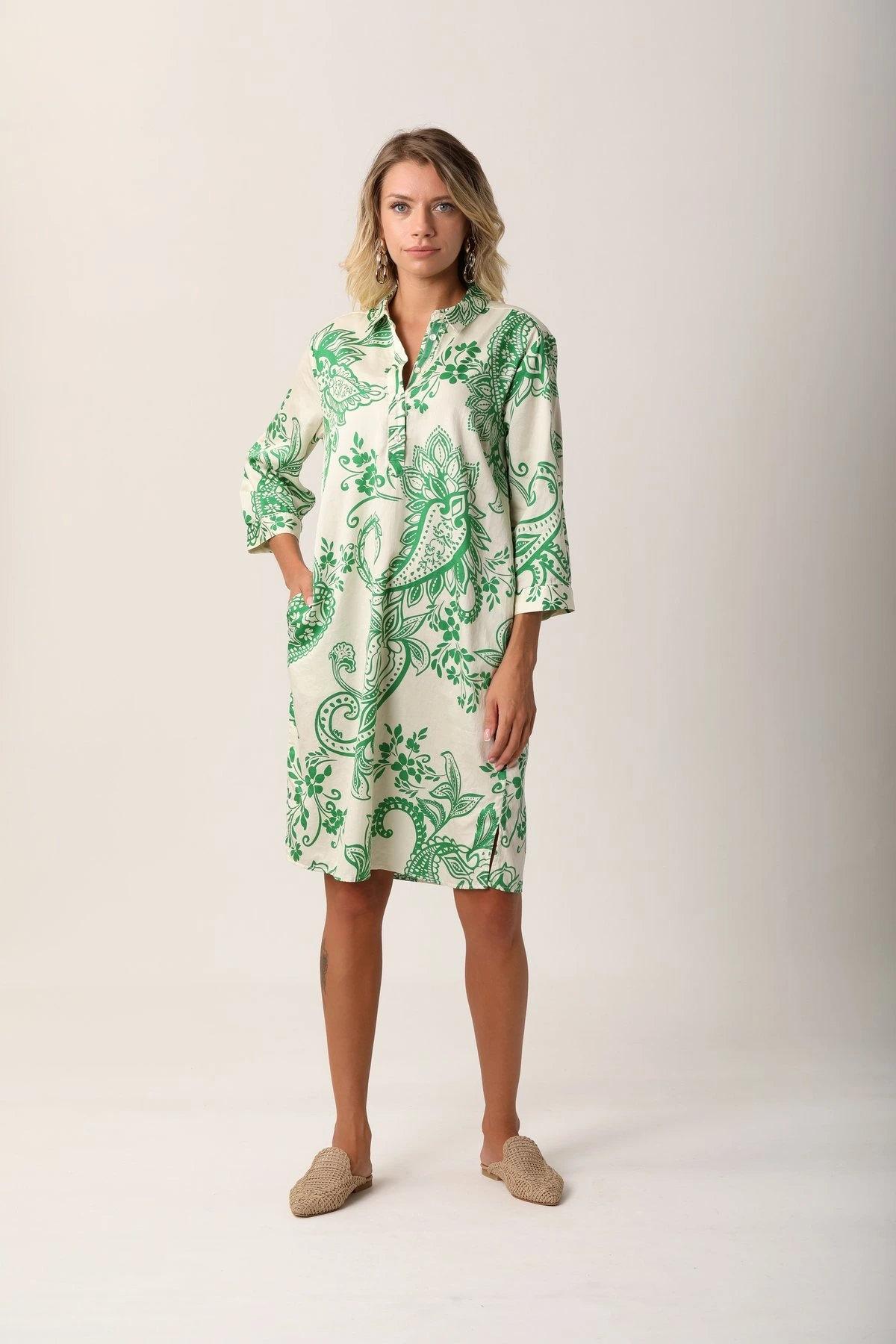 SMİTH SOUL ŞAL DESEN YARI PATLI ELBİSE – YEŞİL