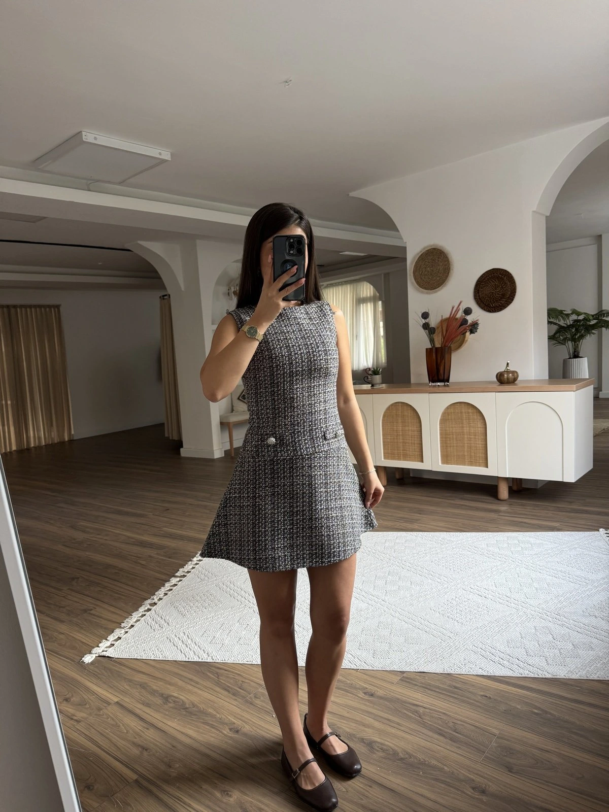 TÜVİT KUMAŞ CEP GÖRÜNÜM ETEĞİ ÇAN MİNİ ELBİSE – KAHVE