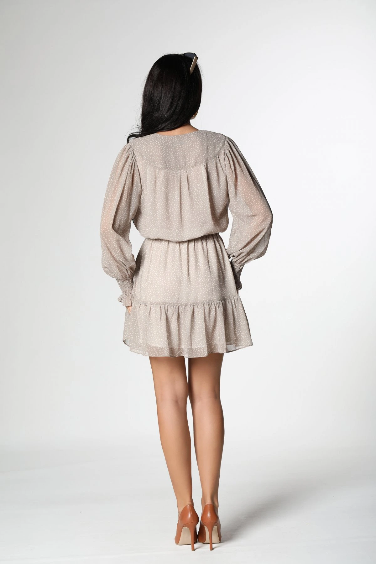 UZUN KOL ŞİFON ELBİSE – BEJ