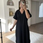 “V YAKA ETEĞİ OVAL SALAŞ KETEN KISA KOL ELBİSE – SİYAH” için yorum yapan ilk kişi siz olun Yanıtı iptal et